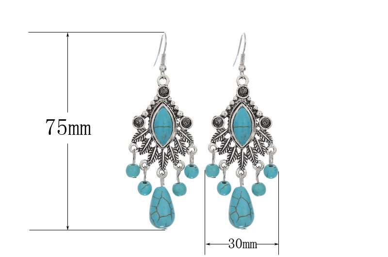 Fashionable Bohemian Vintage Carved Turquoise Teardrop Tassel Earrings