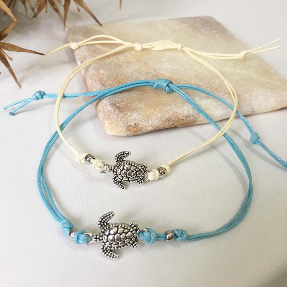 Fashionable Braided Rope Turtle Pendant Anklet For Women
