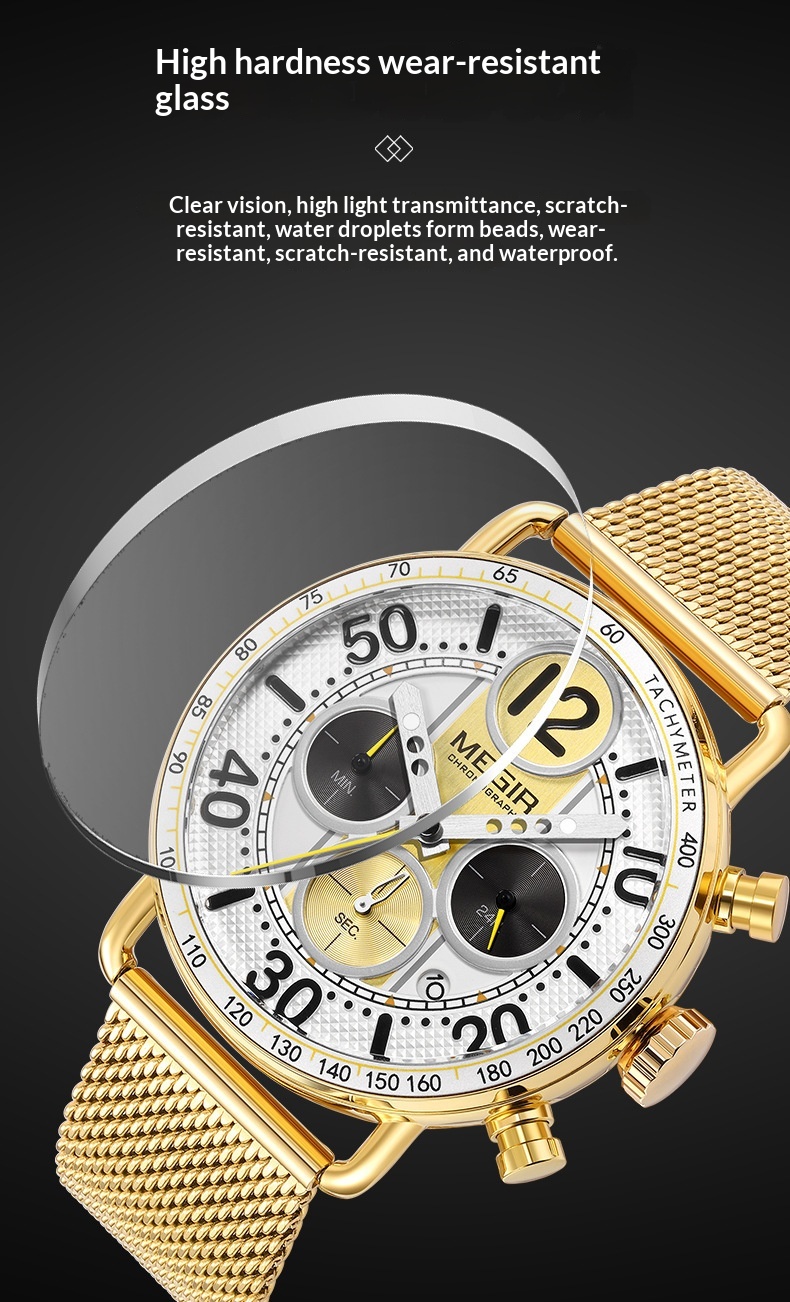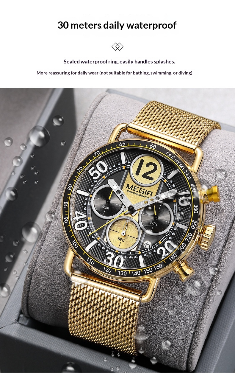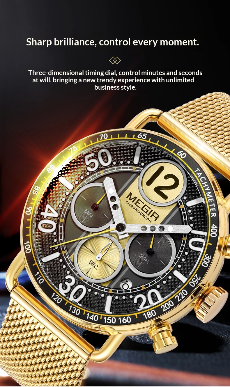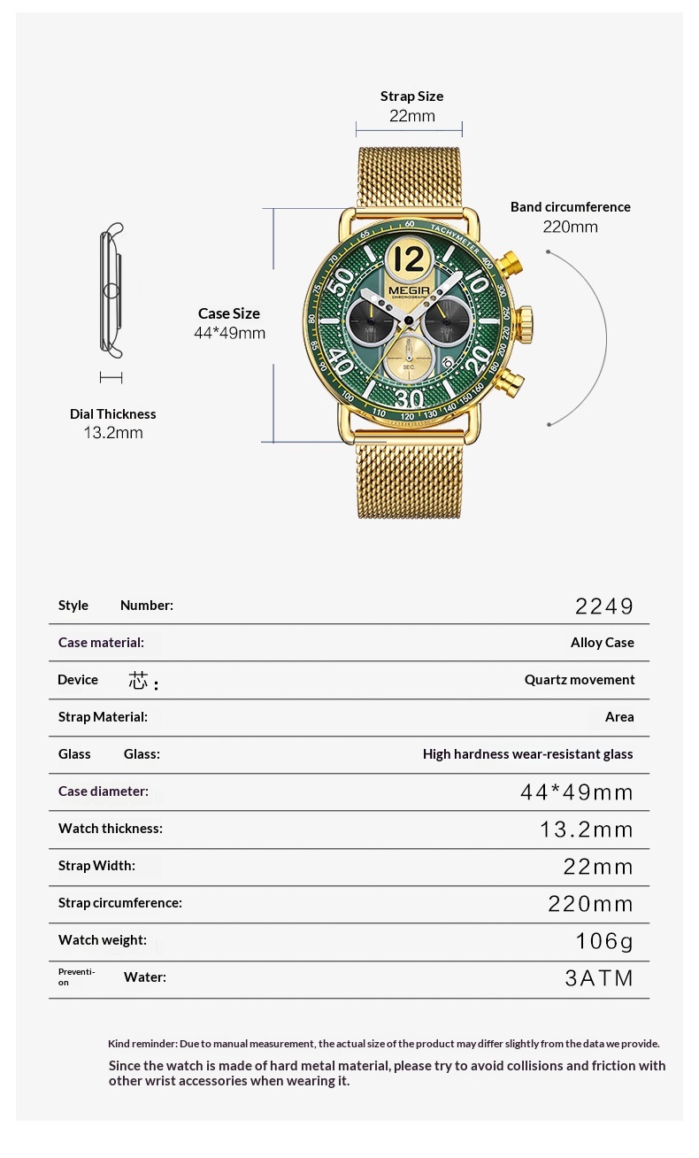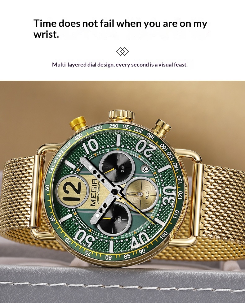 Product information:Color: Gold case, gold bezel, gold dial, gold mesh band; gold case, green bezel, gold accents with green dial, gold mesh band; gold case, white bezel, gold accents with white dial,...