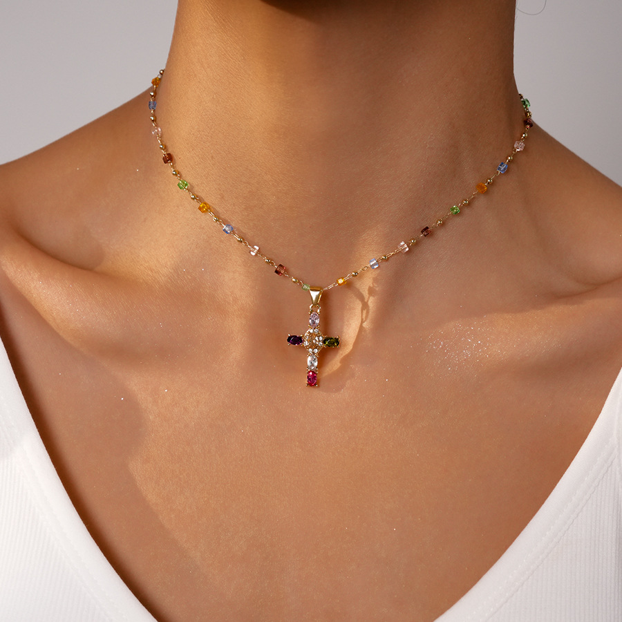 Product information:Processing Technique: Electroplating Color: Necklace – Colorful Cross Target Audience: Women Pendant Material: Alloy Chain Style: Clavicle Chain Material: Alloy Shape: Geometric Tr...