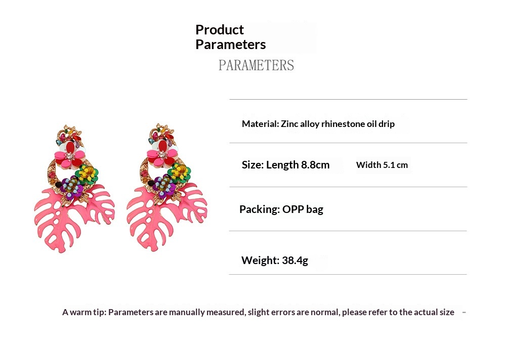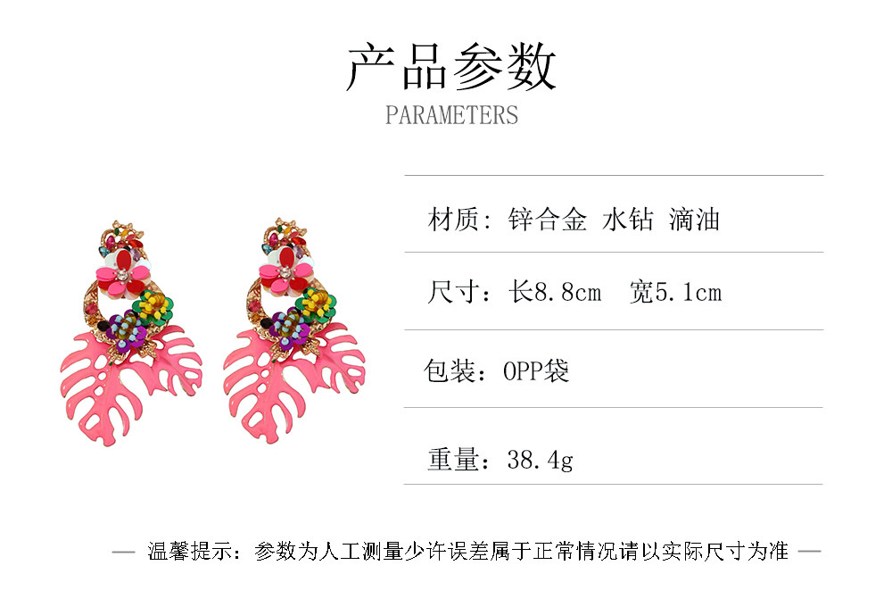 Product information:Processing Method: Electroplating Colors: Red, Green, Pink, Black, Blue, Peach Target Audience: Women Material: Zinc Alloy Design: Floral, Leaf Trendy Elements: Petals, Leaves Styl...