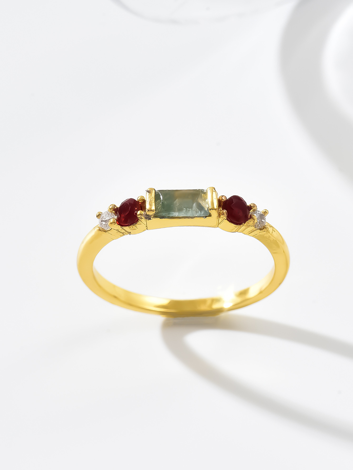 Fashionable Light-luxury Vintage Copper Ring With Natural Stone