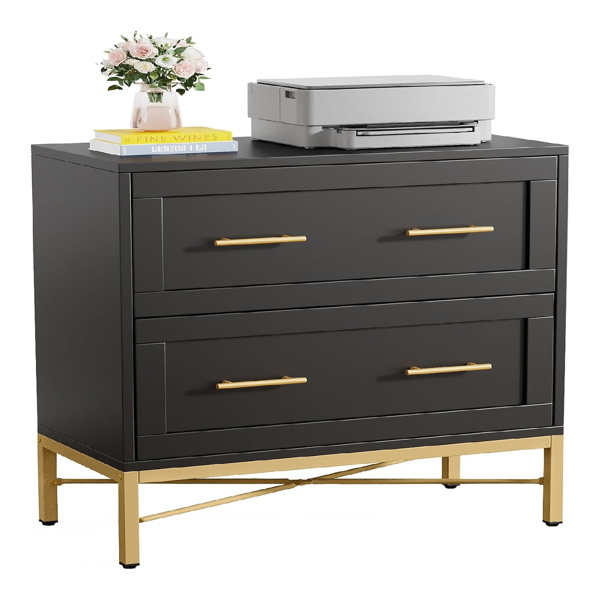 Stylish Filing - Refresh your workspace with our chic filing cabinet. Boasting a clean white finish and shiny gold legs, this 2-drawer lateral cabinet adds practical elegance to your home, office, or study area.Office Essential - Struggling with paperwork clutter? Our two-drawer cabinet features adjustable rails for letter, legal, and A4 files, ensuring organized storage. The fully expandable drawers offer deep file access, and the 31.4' W x 15.7"D top works perfectly for placing a printer or decorations.