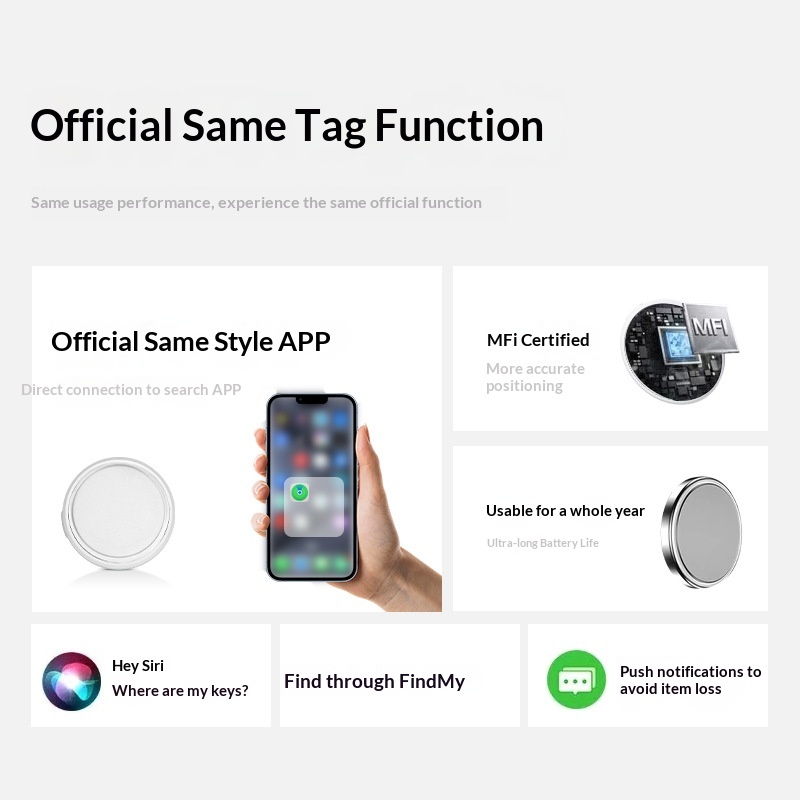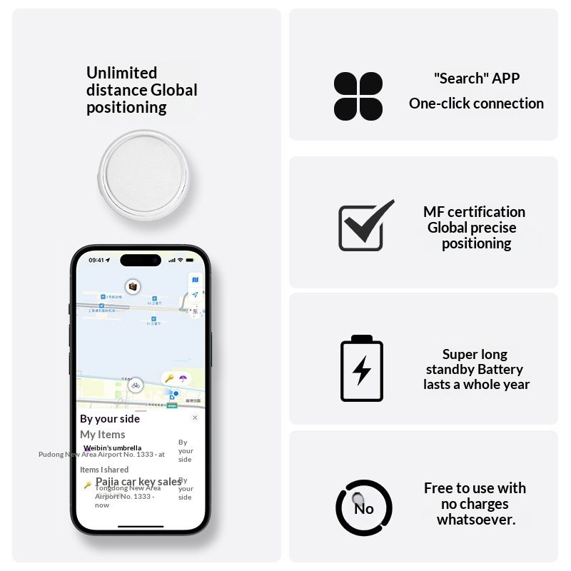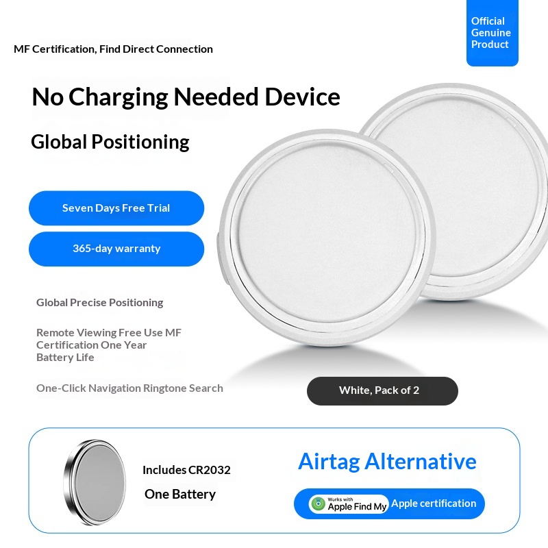 Product information:Color: White Apple system, Black Apple systemInterface: CR2032 batteryAdditional features: Global positioning trackerMaterial: PlasticSuitable for: Children, elderly, and pets trac...