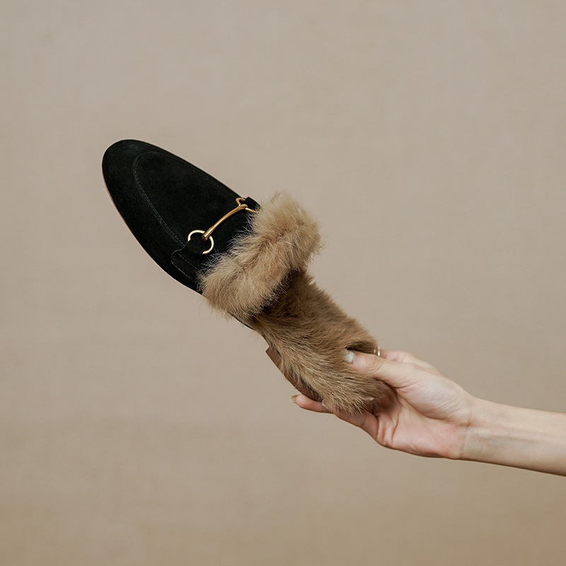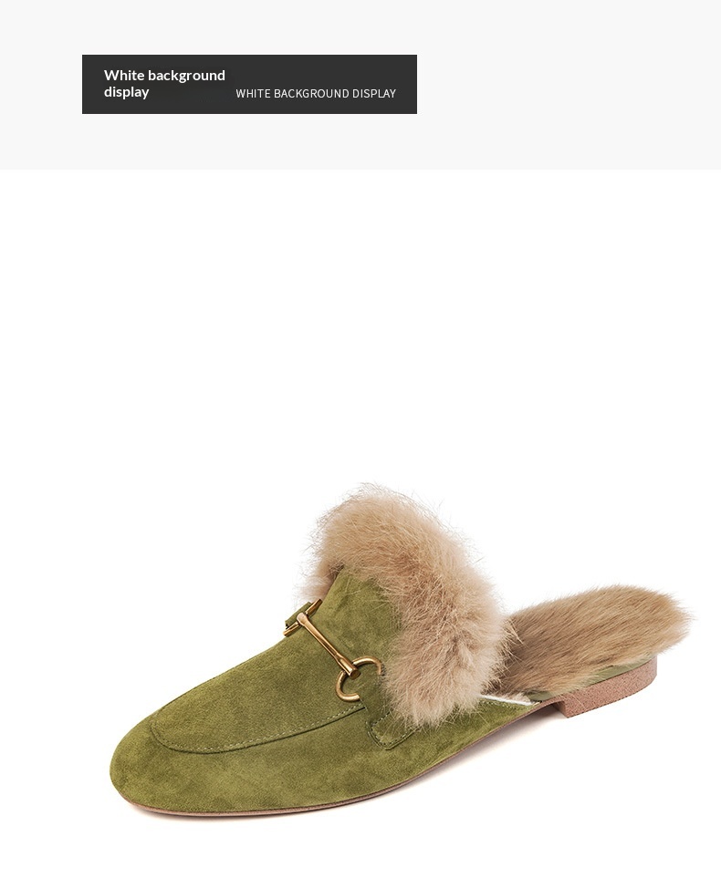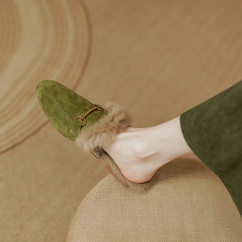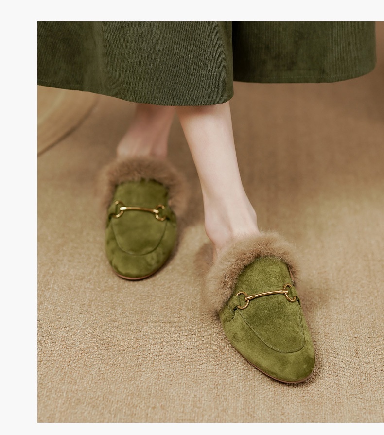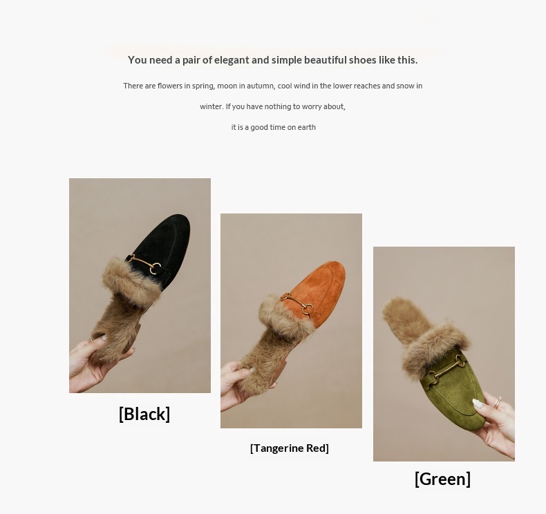 Product information:Pattern: Solid color Lining material: Faux fur Applicable occasion: Everyday wear Colors: Green, black, orange Upper material: Genuine leather Sizes: 34, 35, 36, 37, 38, 39, 40 (cu...