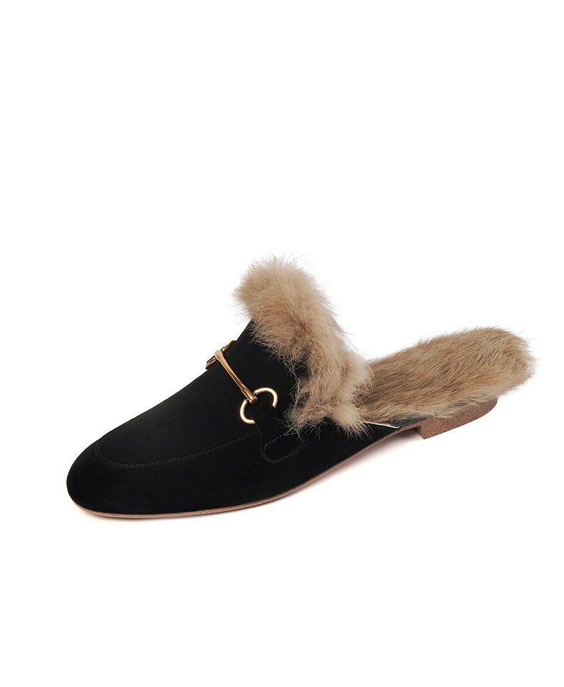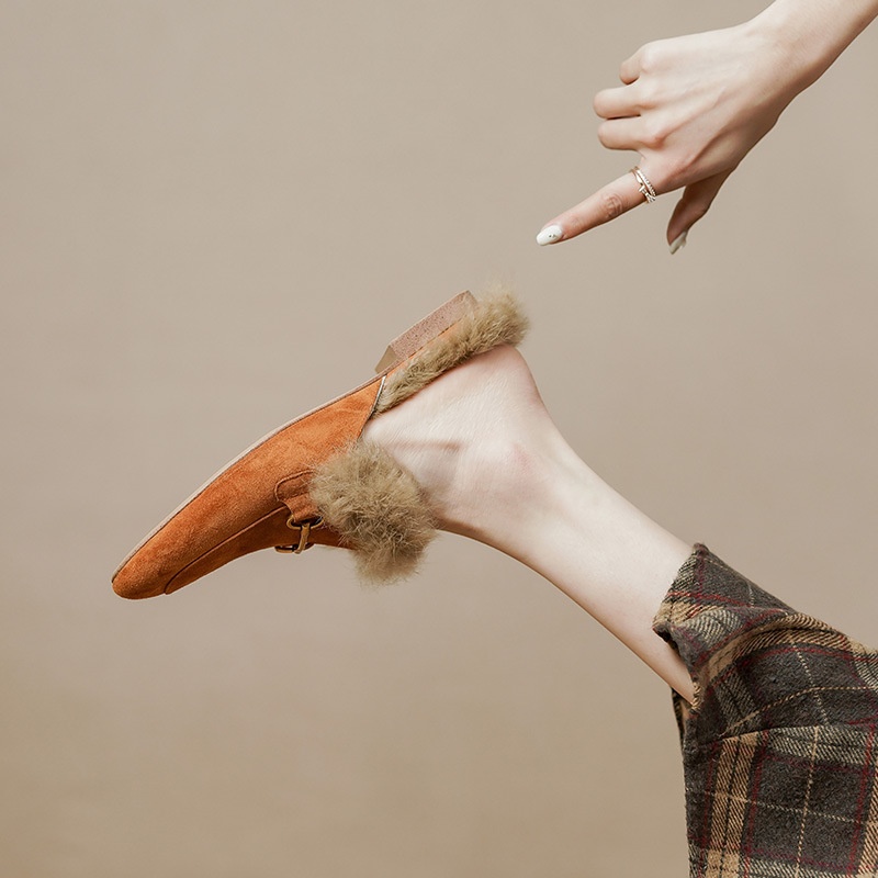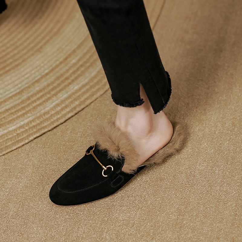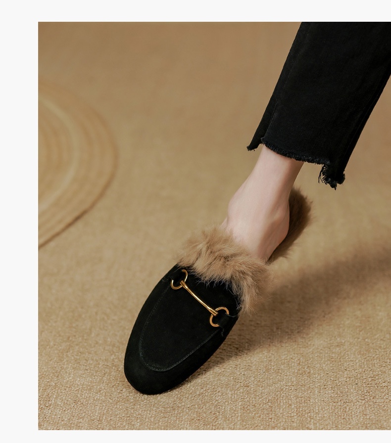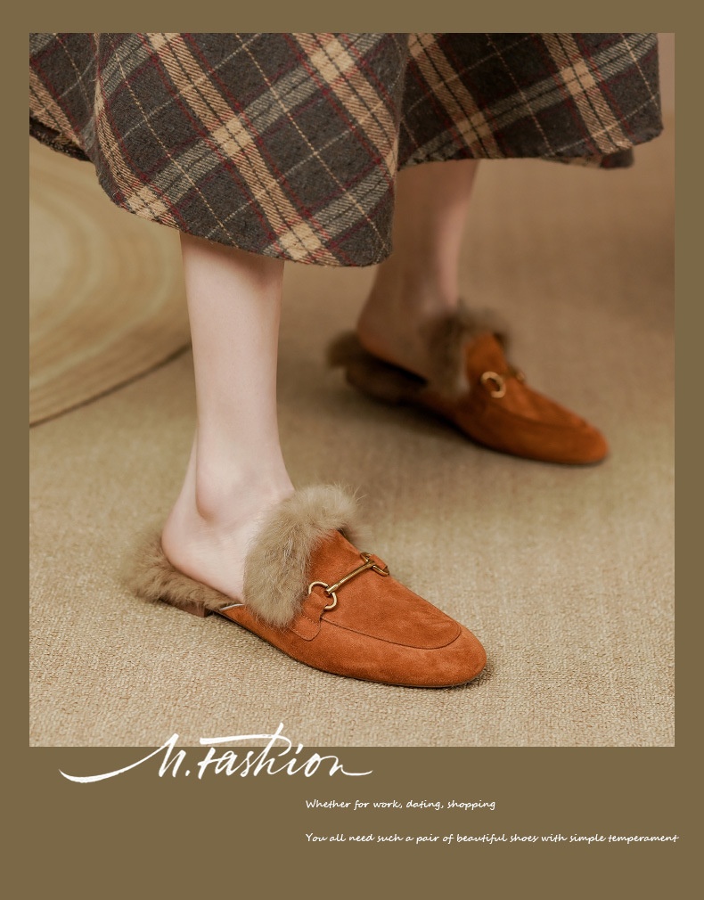 Product information:Pattern: Solid color Lining material: Faux fur Applicable occasion: Everyday wear Colors: Green, black, orange Upper material: Genuine leather Sizes: 34, 35, 36, 37, 38, 39, 40 (cu...