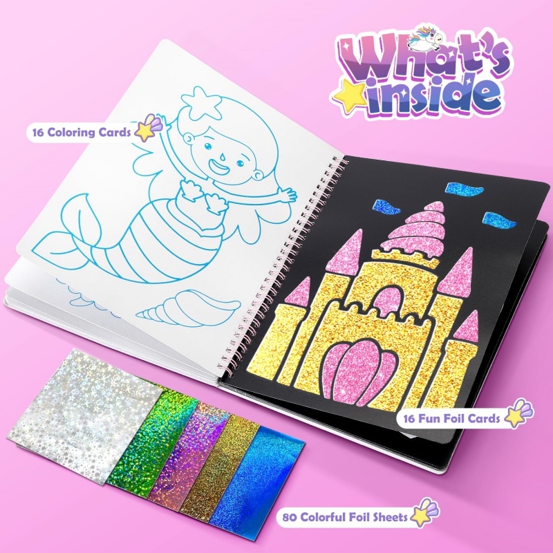 Unleash Your Kids Creativity: This mermaid foil art for kids not only allows your child to be fully focused, but also cultivates their perception and appreciation of beauty, unleashing their creativity and making them believe they have the ability to create beautiful things, so that they can showcase their works to family and friends and receive their praise and encouragement. Believe me, this foil art for girls can make you and your child more intimate, increase interaction time, and create a sense of familiarity while you play together