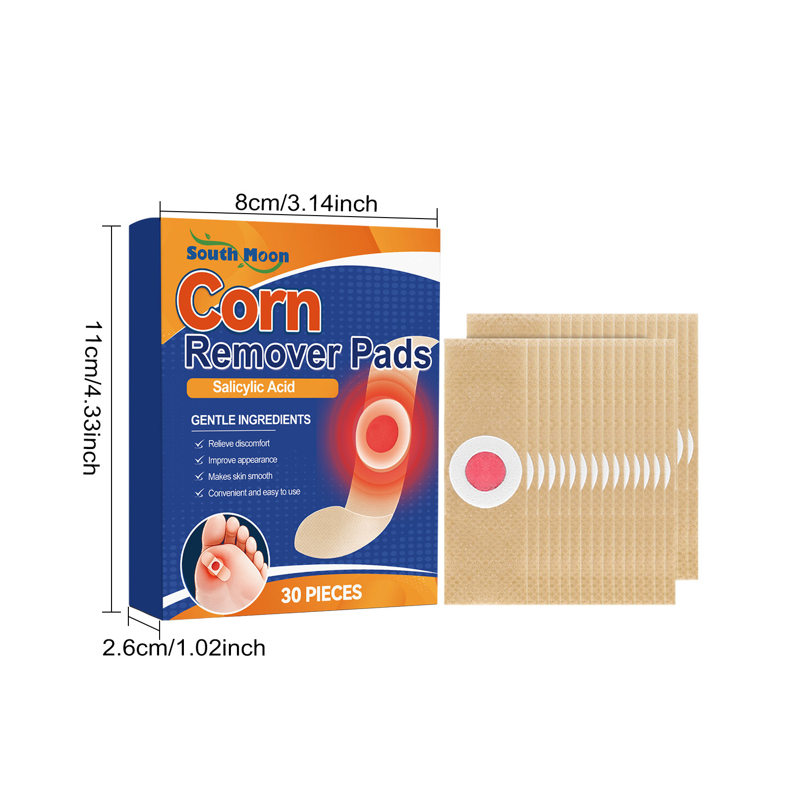 Product information:Active ingredients: Tocopherol (Vitamin E), salicylic acid, allantoin Inactive ingredients: Mineral oil, ethylhexyl palmitate, beeswax, glycerin Packing list: Foot care patch *30...