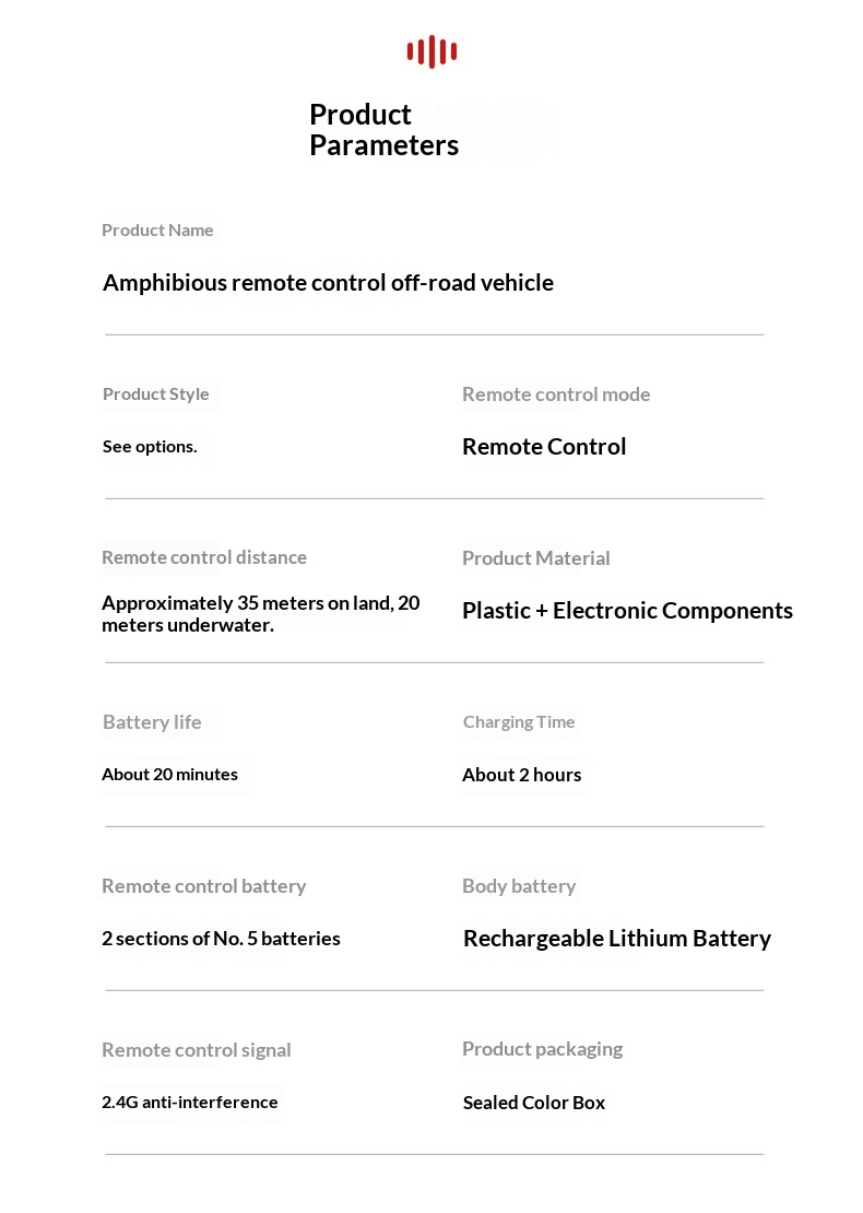 Product information:Skill Development: Hand-eye coordination, interactive play, fostering interest Colors: Deluxe 4x4 Amphibious Hummer (Red), Deluxe 4x4 Amphibious Hummer (Green), Deluxe 4x4 Amphibio...