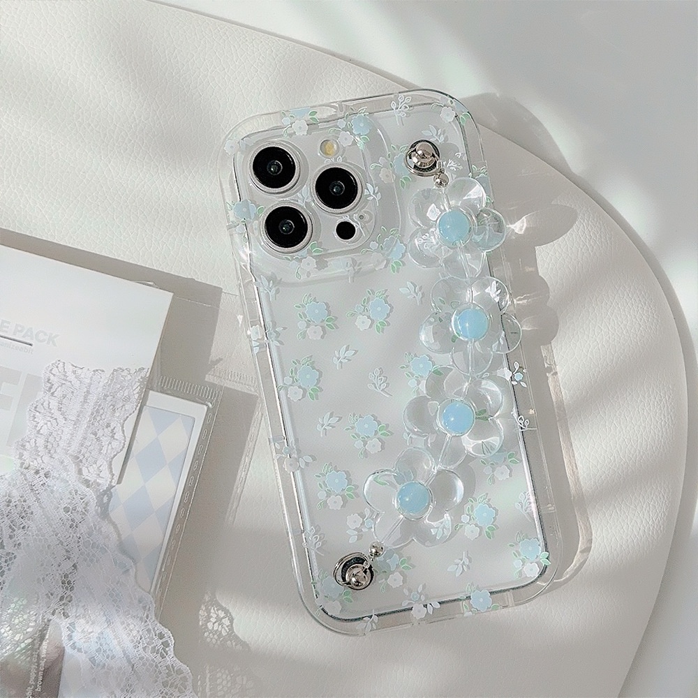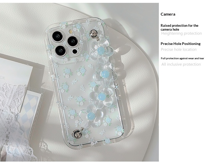 Product information:Color: Transparent light blue five-petal flower + transparent blue flower bracelet, transparent light blue five-petal flower Compatible Models: Apple Function: Drop-resistant Mater...