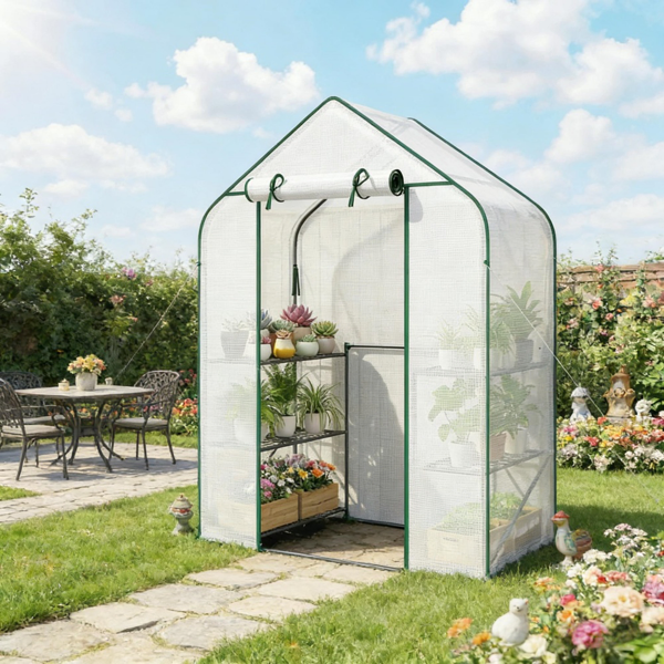 - Walk-in design allows comfortable tending of plants daily