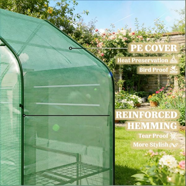 - Robust PE cover protects plants from light wind and rain