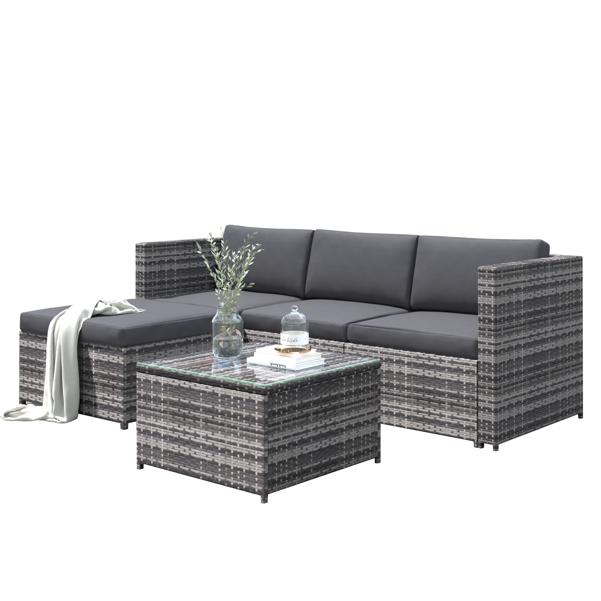 Garden Corner Sofa Rattan Garden Furniture Patio Set Garden Entertaining Set Garden Rattan Furniture Lounge Set,Grey