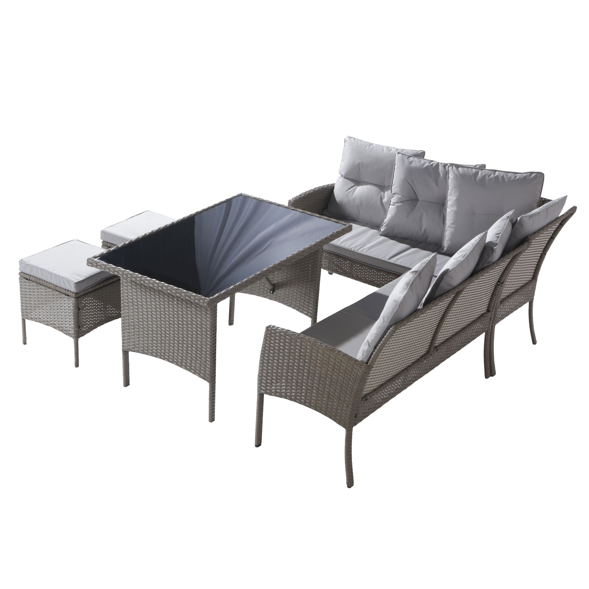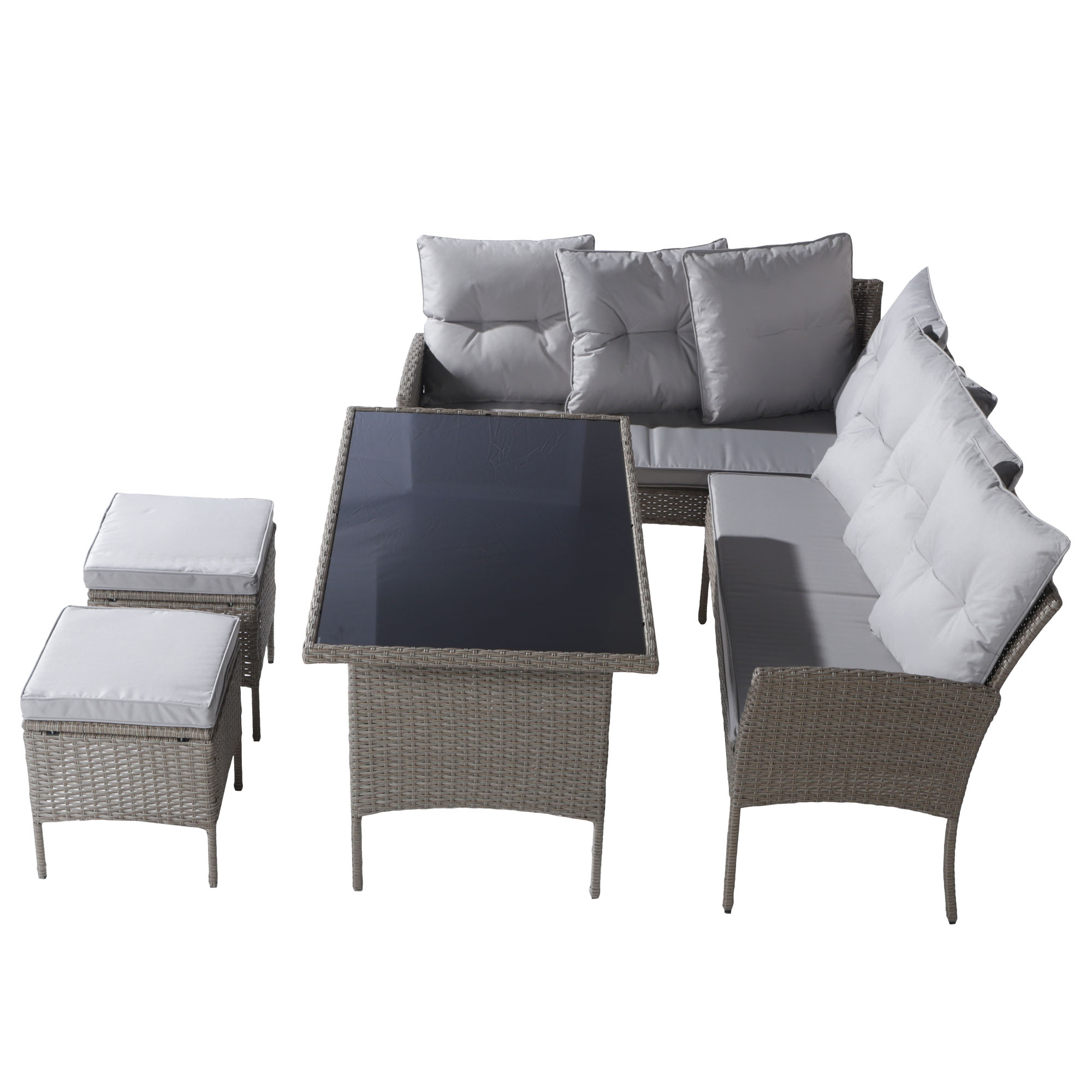 Product Name:Garden Furniture Sets, Garden Sofa,Garden Corner Sofa Rattan Patio Set, 6-7 Seater Outdoor Patio Furniture,Lounge Corner Sofa Set with Table Stool, Mixed Khaki Wicker with Light grey Cushions