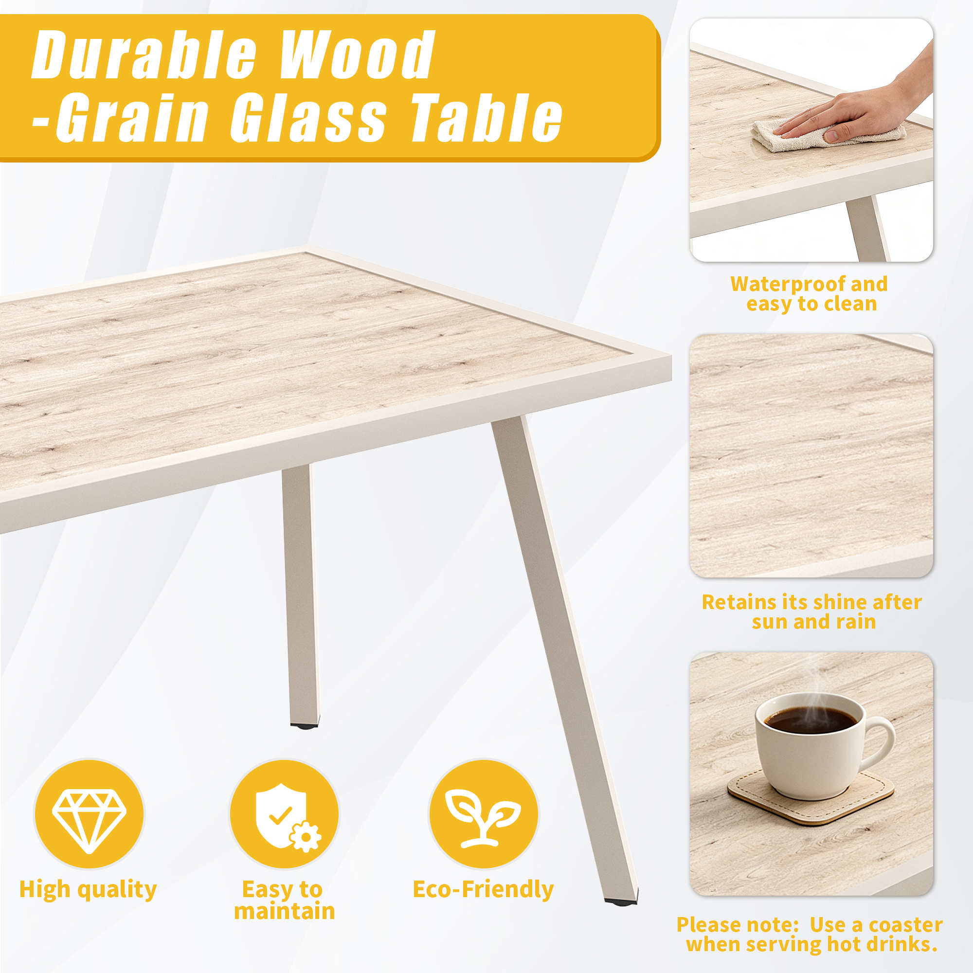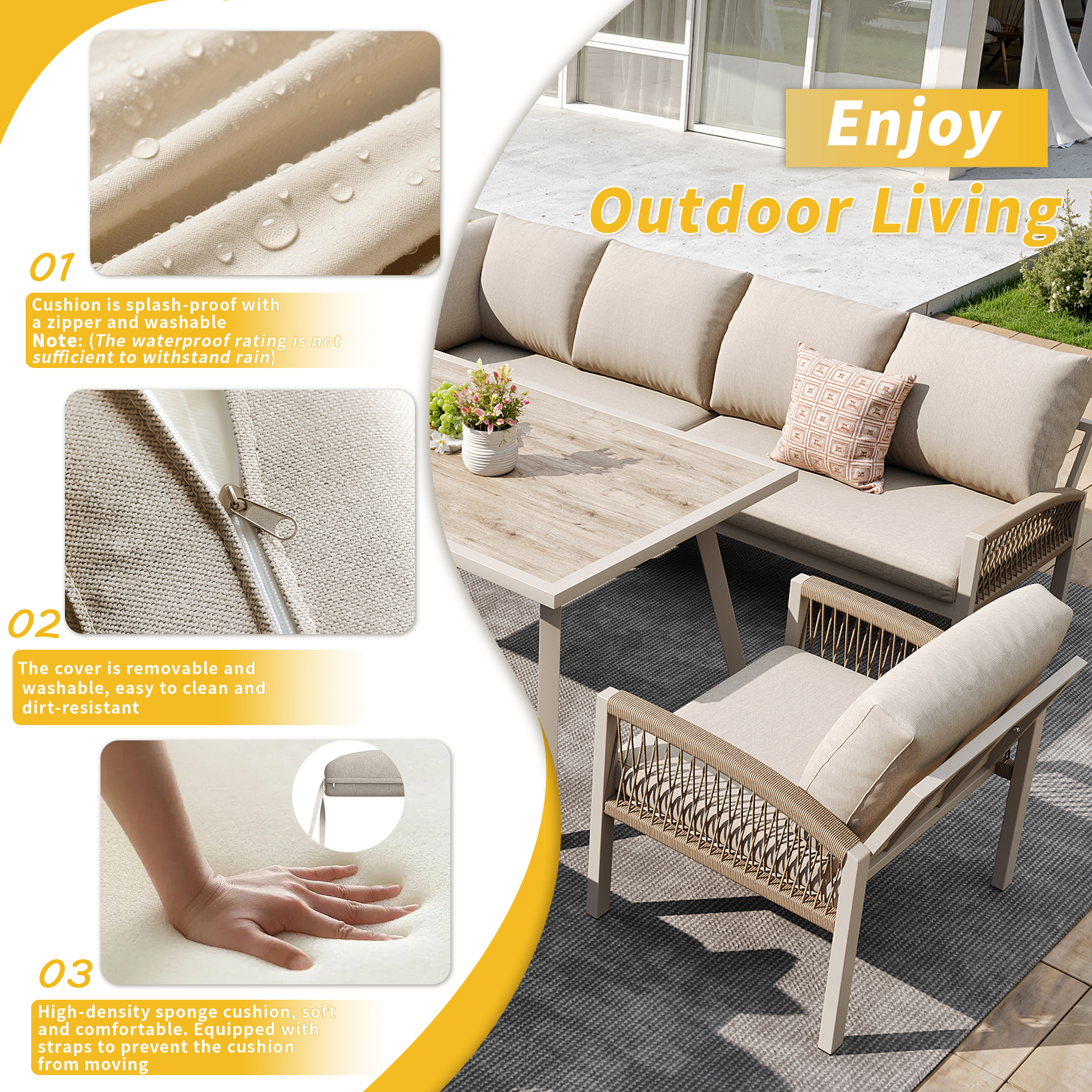 - Detailable: The table and chairs are equipped with adjustable legs that keep them stable even on uneven floors and protect the floor from scratches. The table and chair set also includes back and seat cushions with a thickness that ensures comfortable seating.