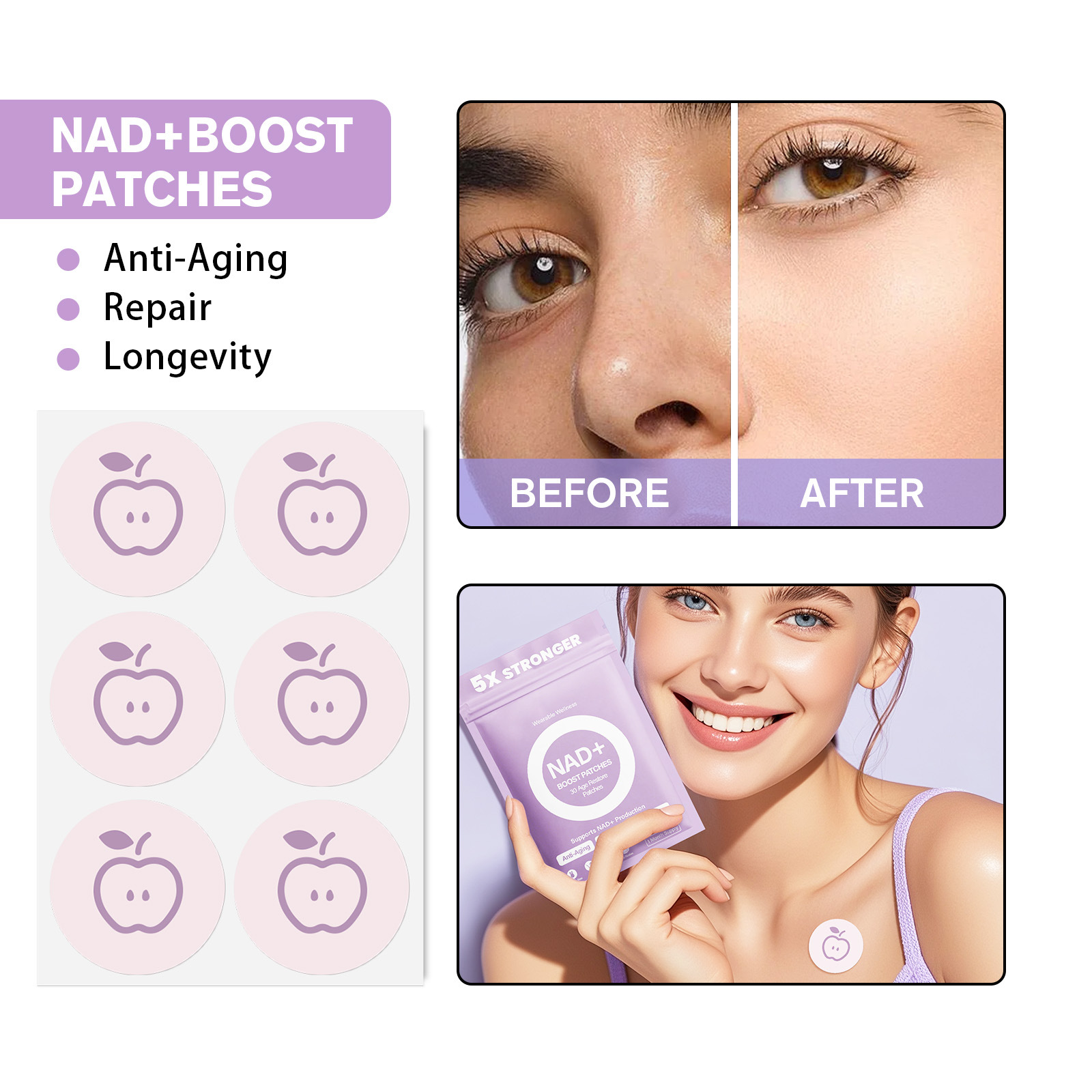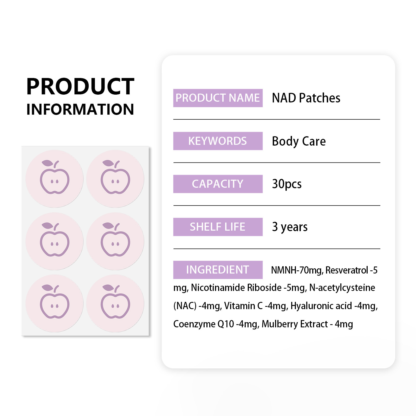 Product information:Type: Patch Specifications: Standard size Suitable skin types: All skin types Color options: 30 patches—Red Apple, 30 patches—Purple Apple, 30 patches—Blue Apple, 30 patches—Yellow...