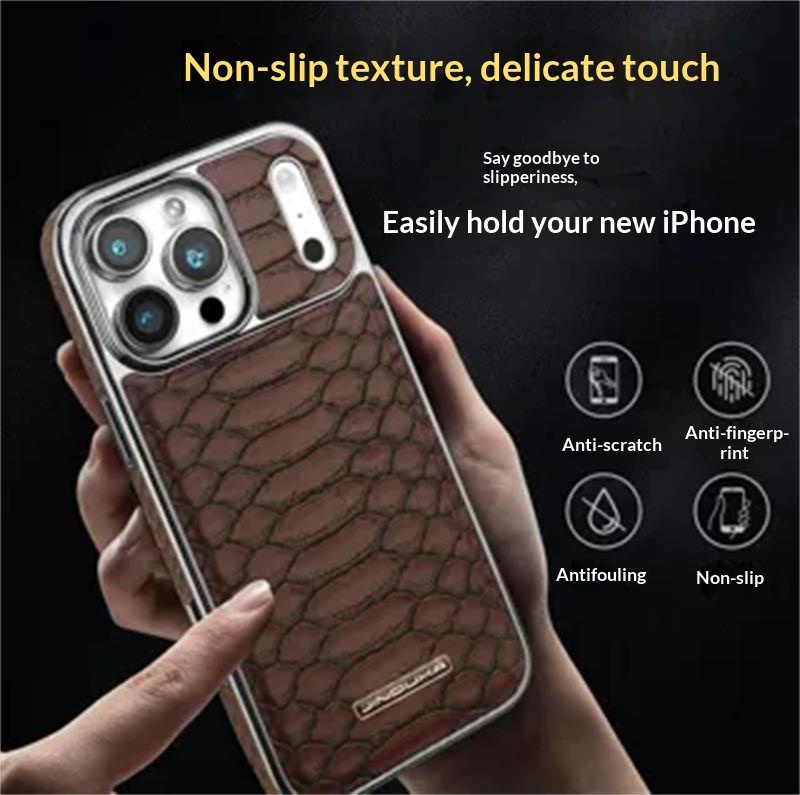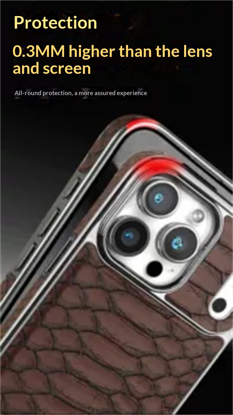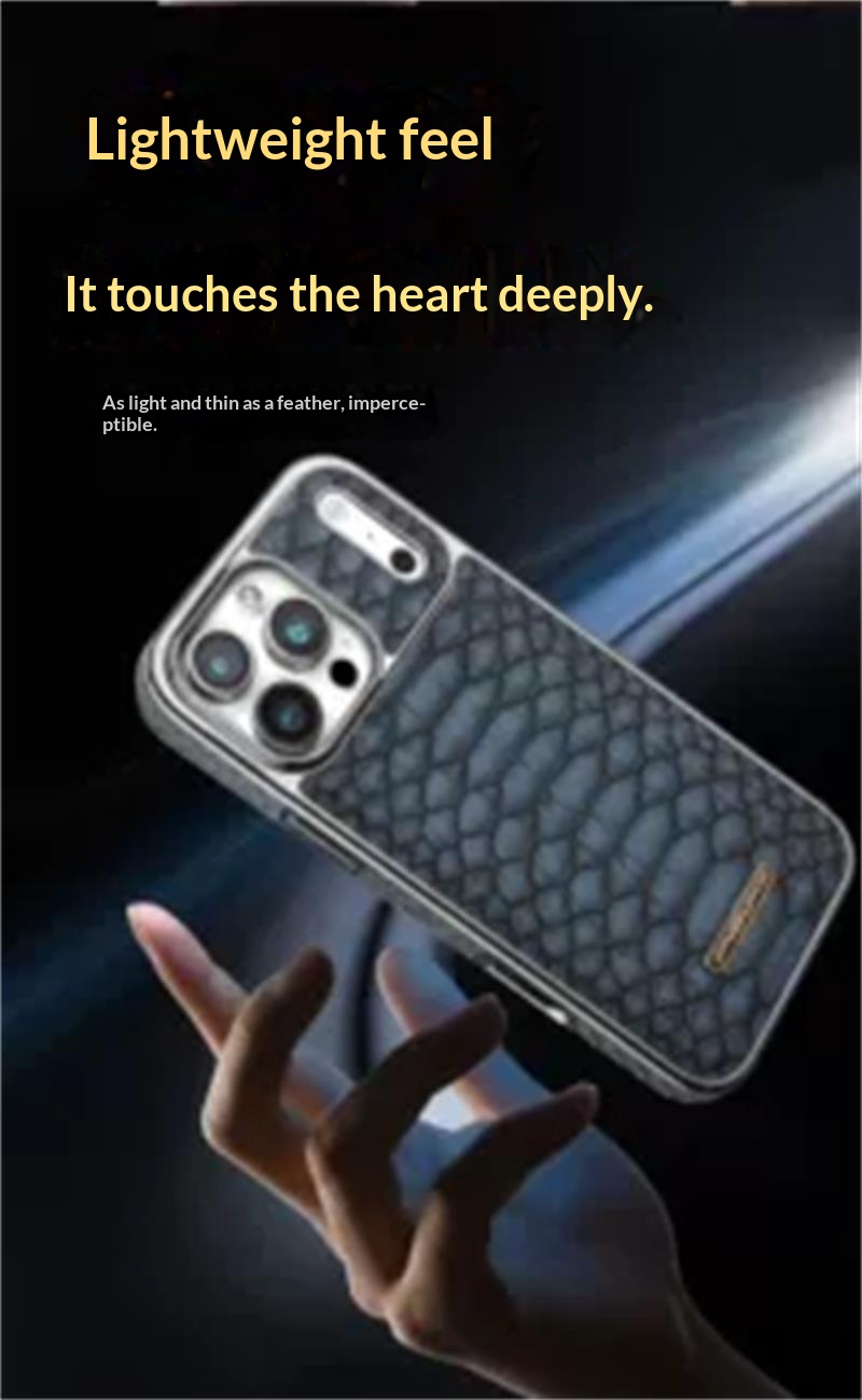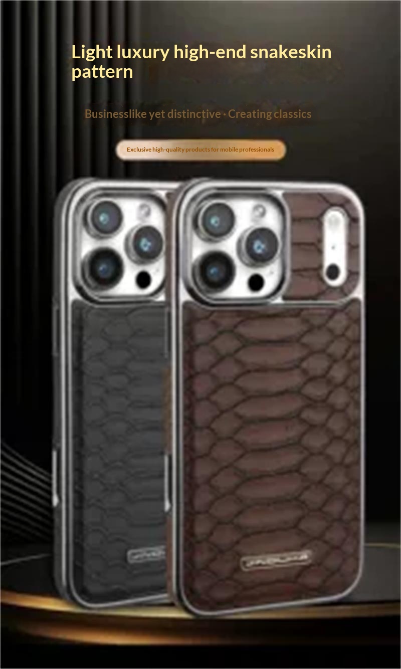 Genuine Leather With Snake-pattern Design Light-luxury Business Style Full-wrap Case