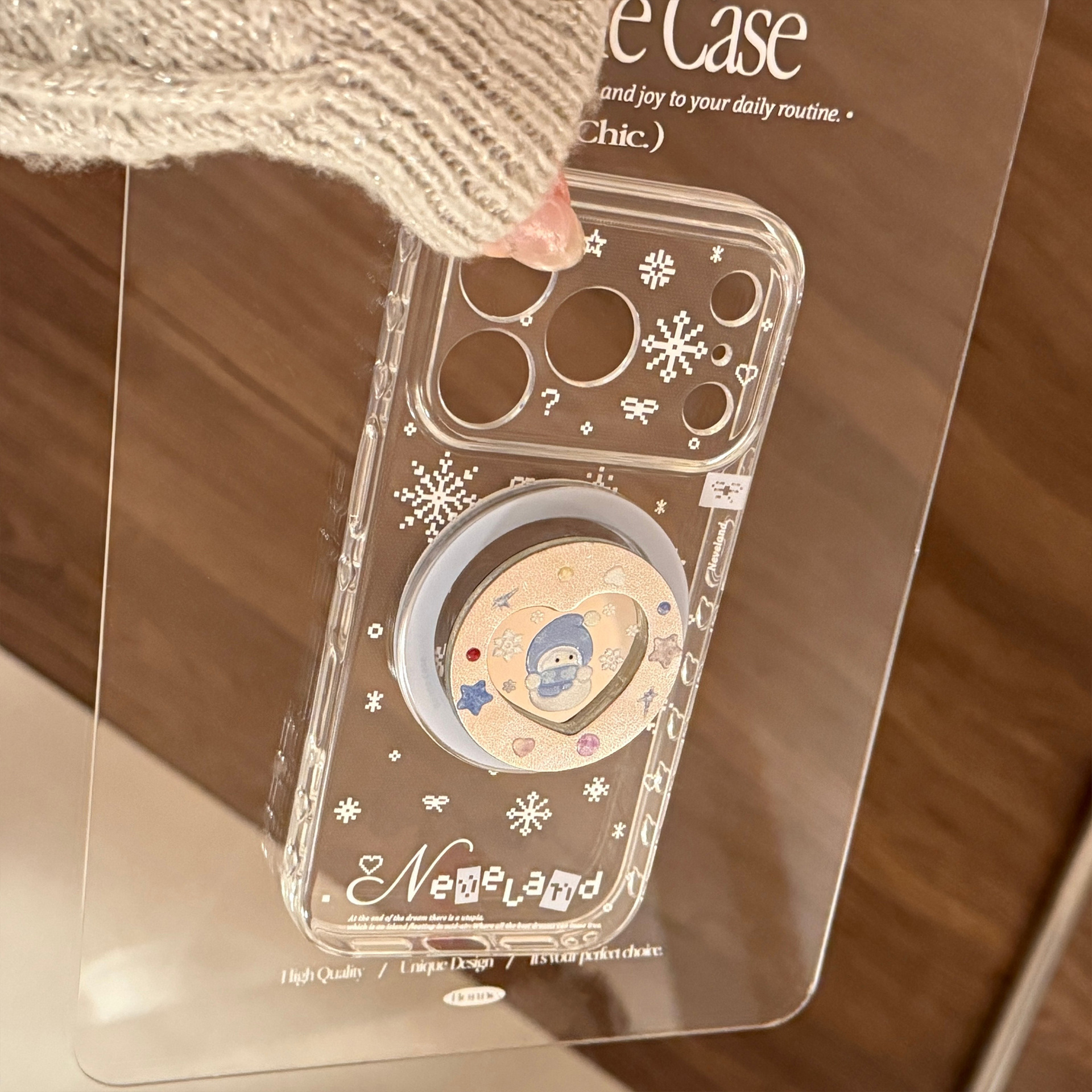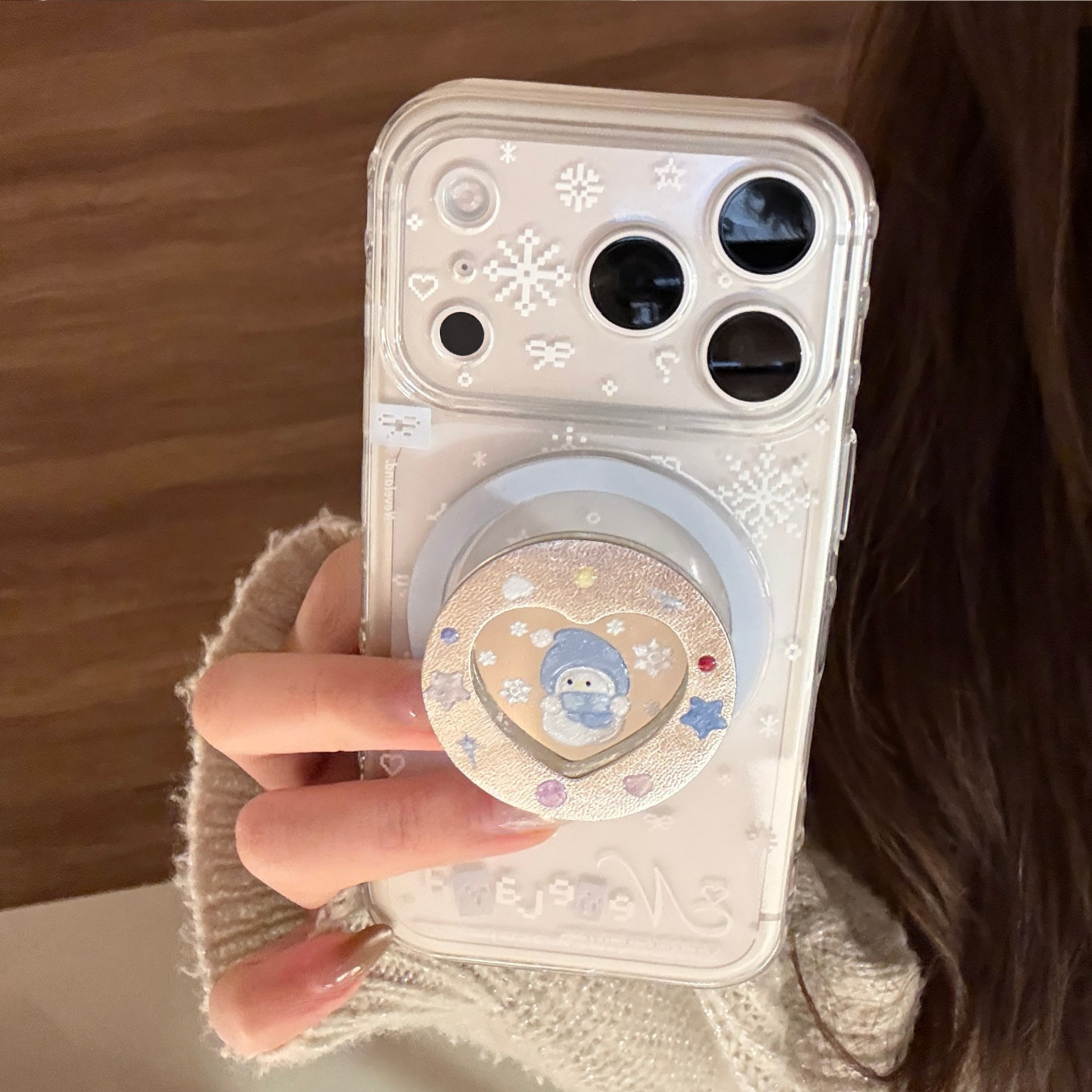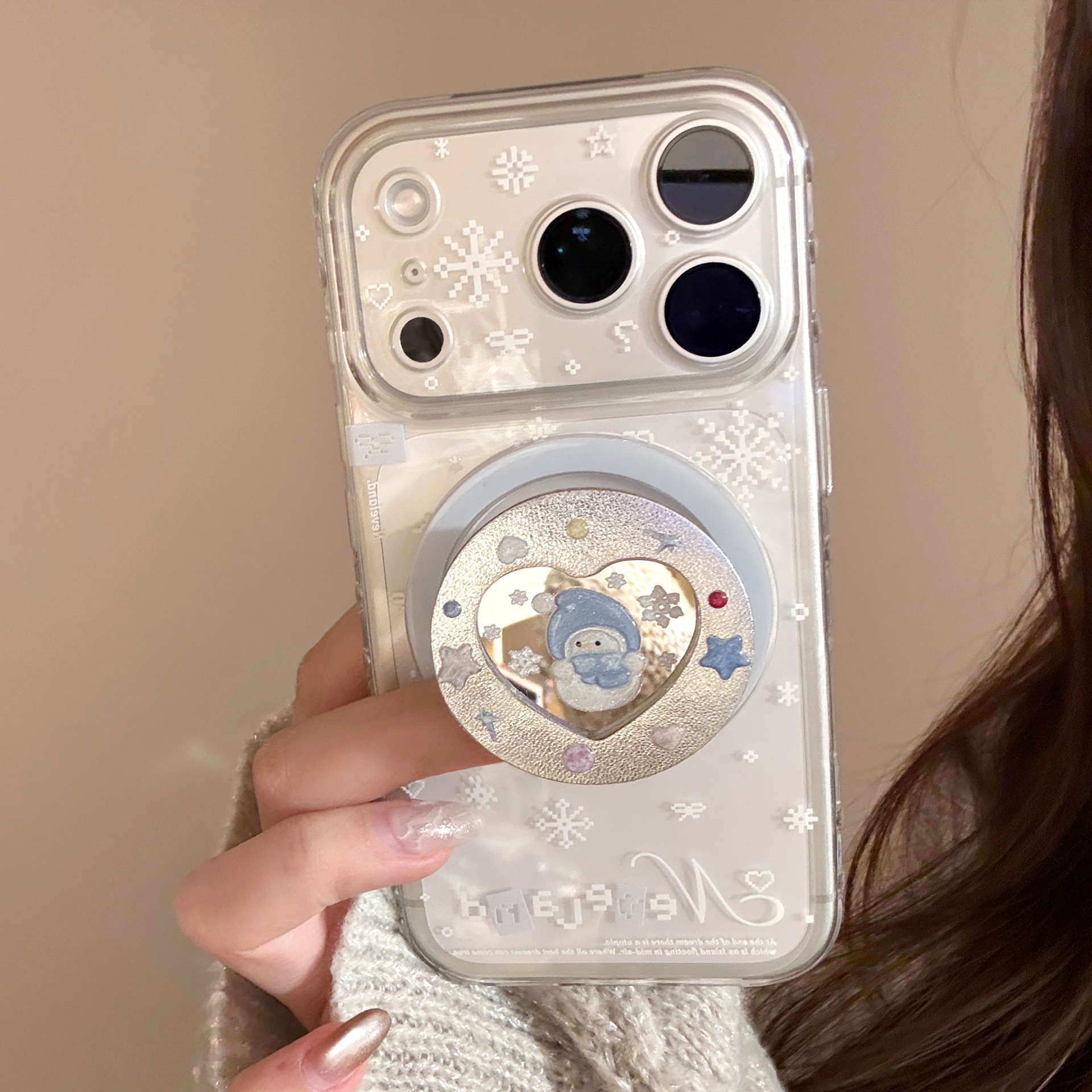 Color: Transparent magnetic, Snowflake Pattern + Silver Leather Snowman; Lusha Mirror-Surface Magnetic Stand; Transparent magnetic, Snowflake Pattern
