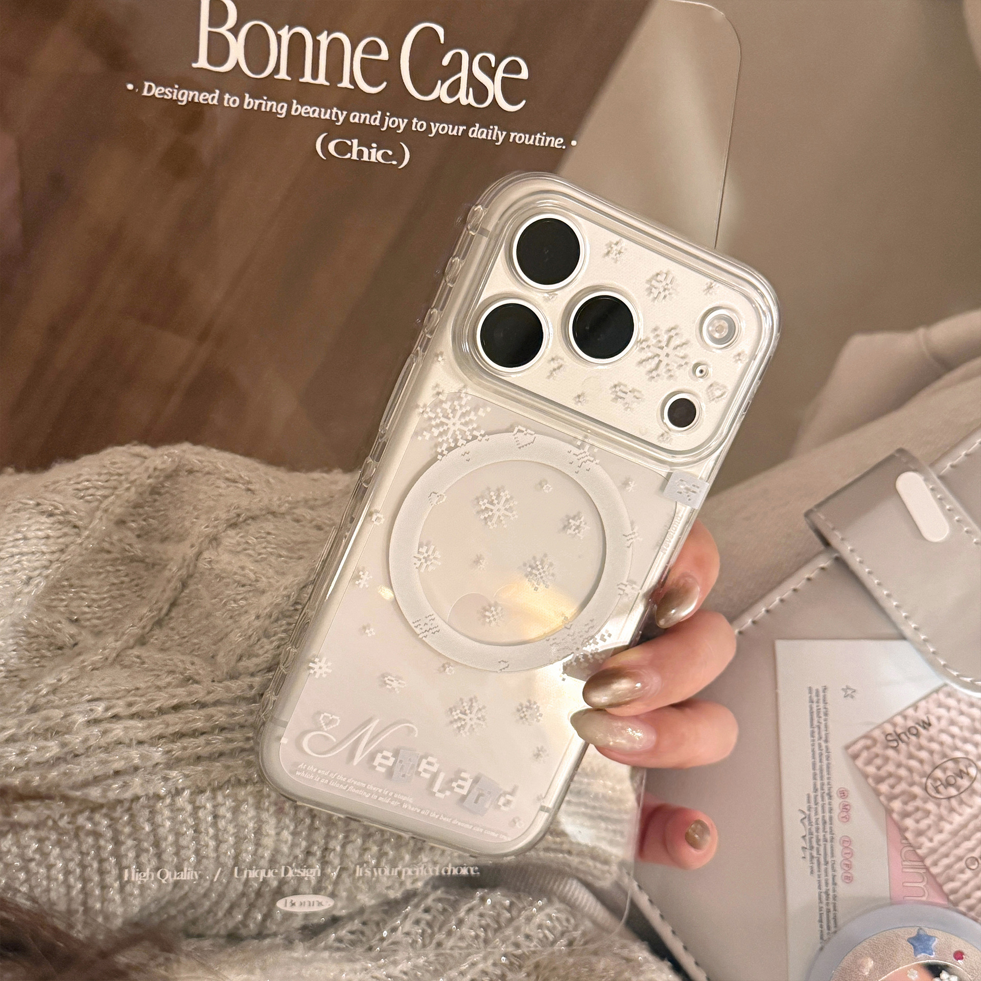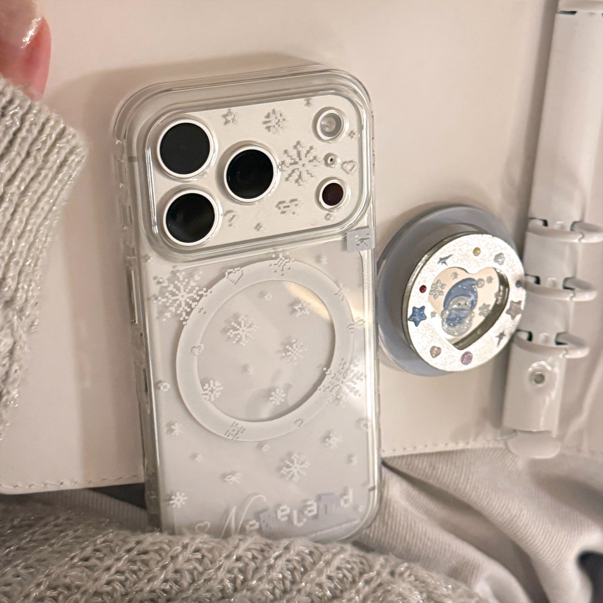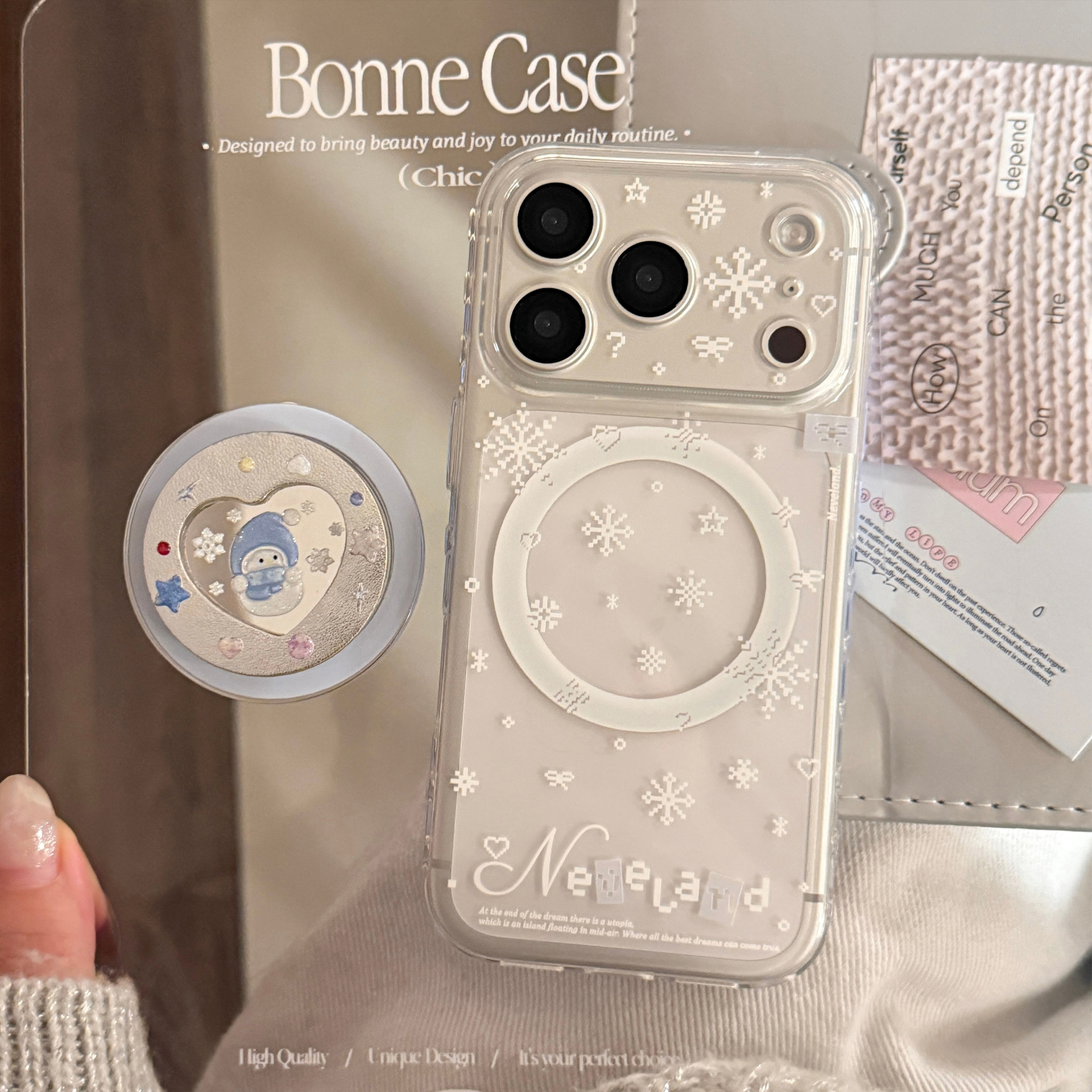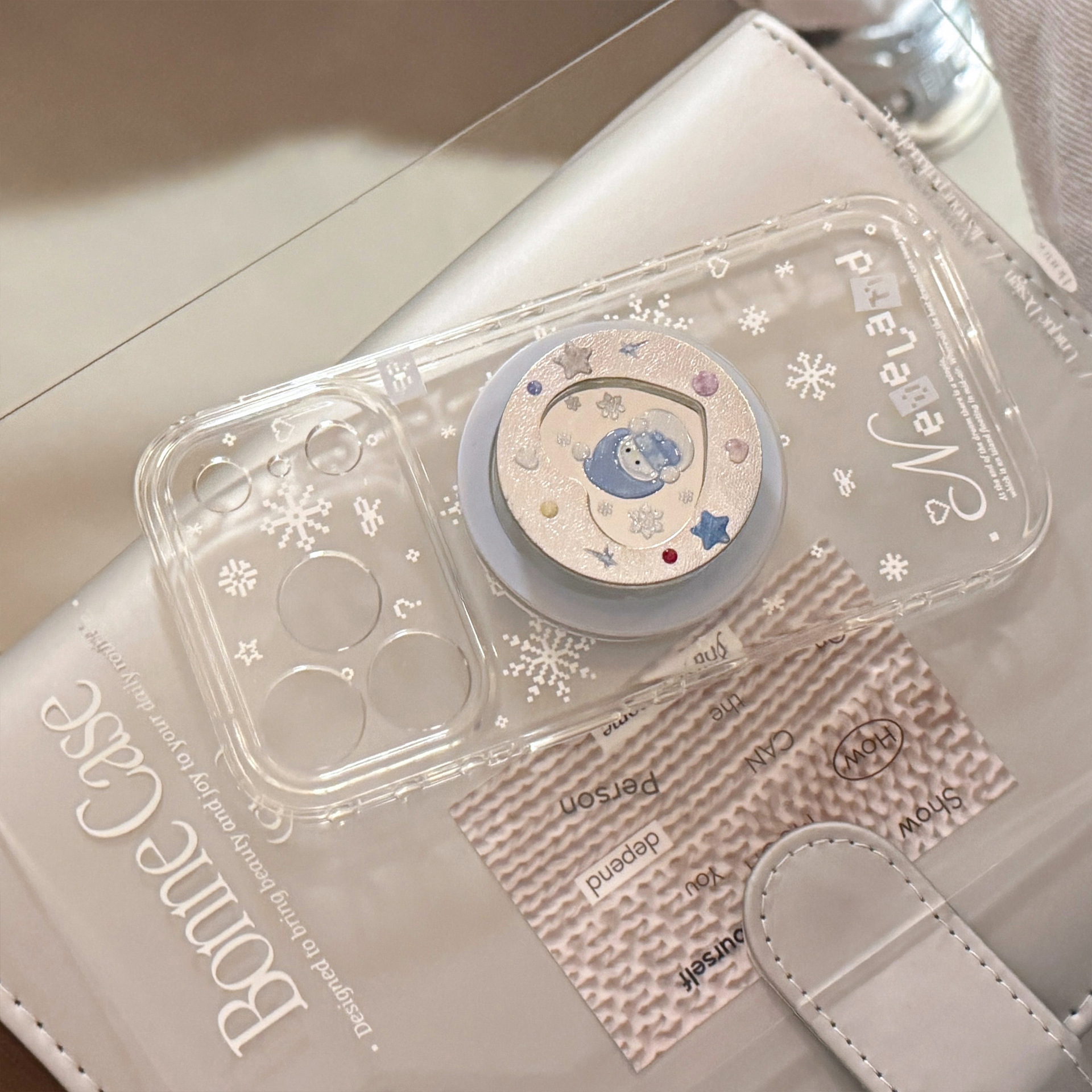 Color: Transparent magnetic, Snowflake Pattern + Silver Leather Snowman; Lusha Mirror-Surface Magnetic Stand; Transparent magnetic, Snowflake Pattern