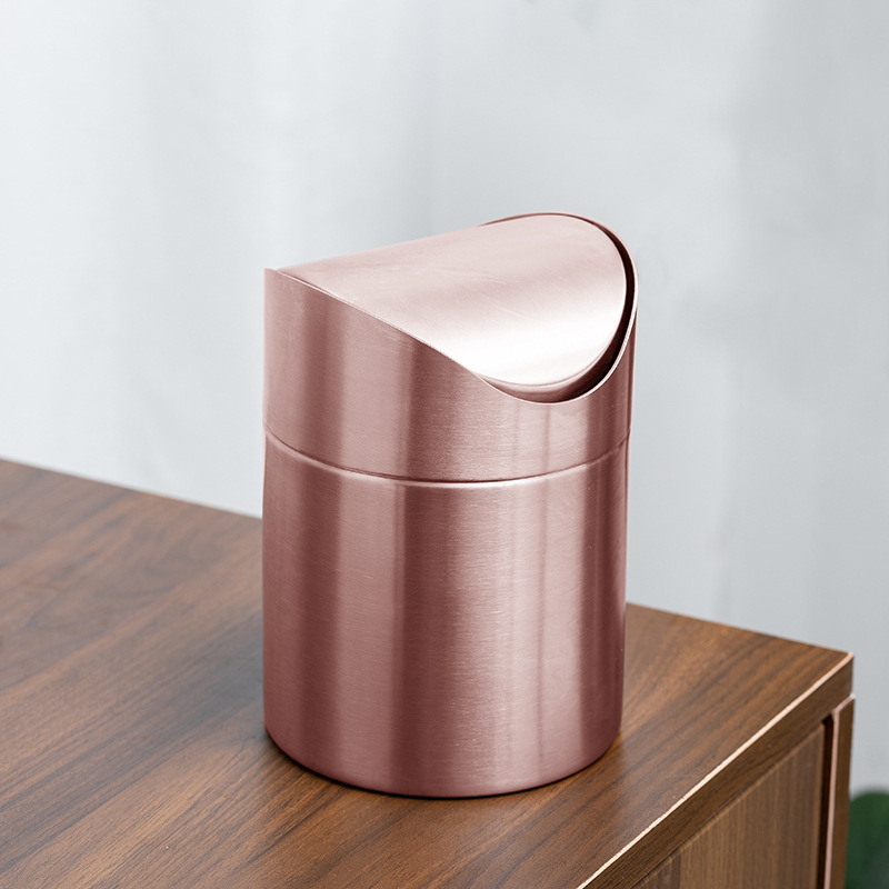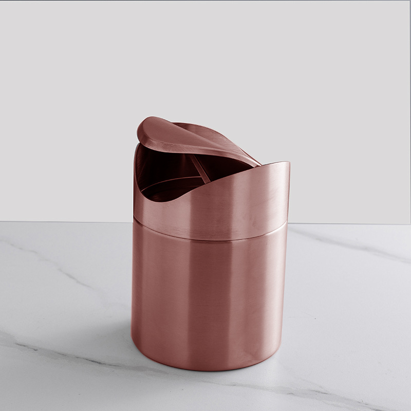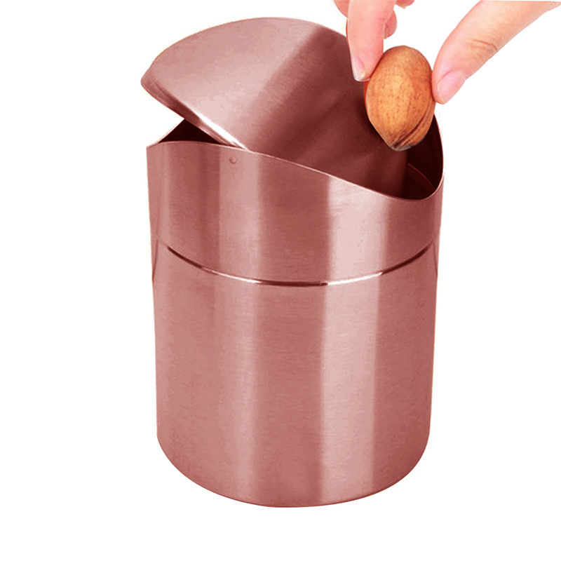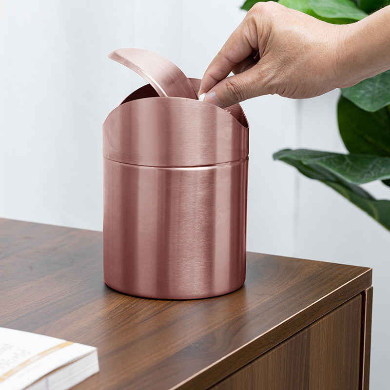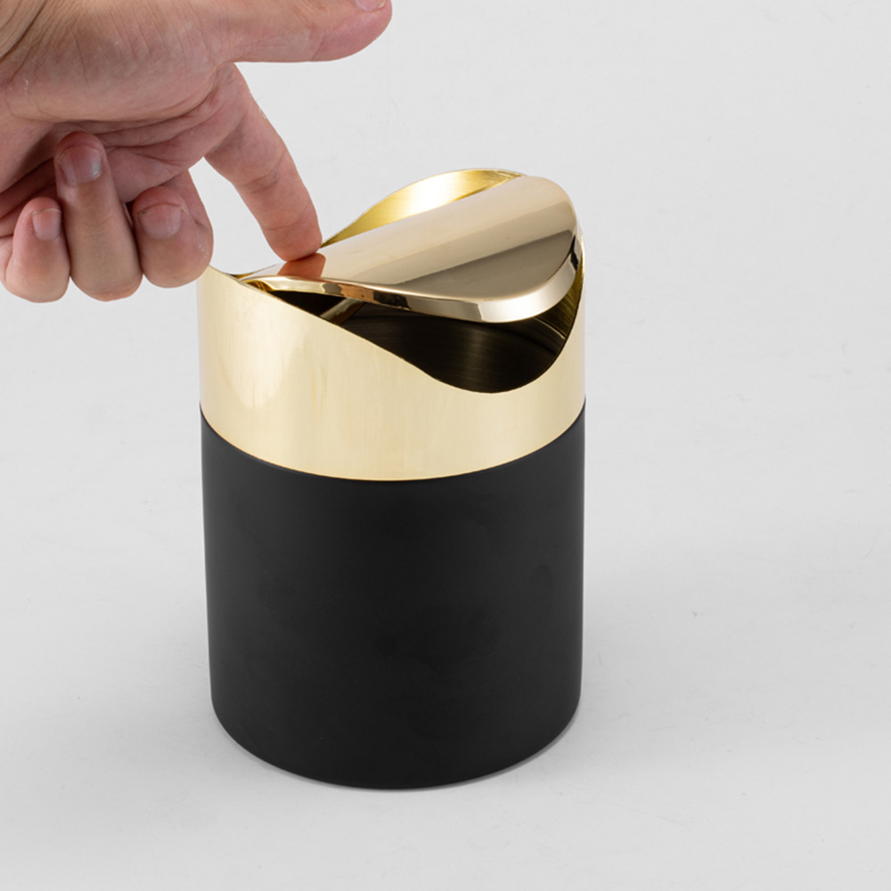 Golden Desktop Trash Can Creative Mini Trash Bin With Lid