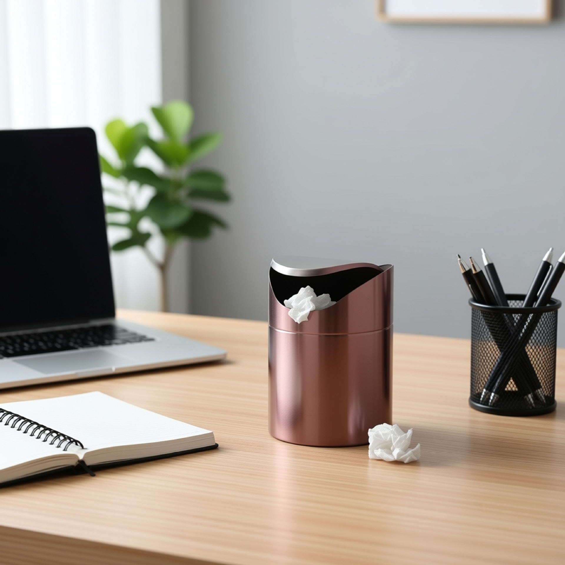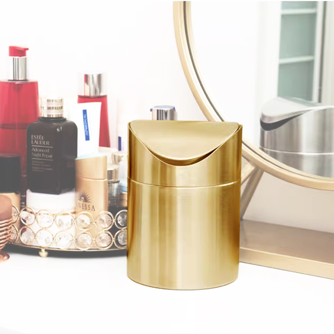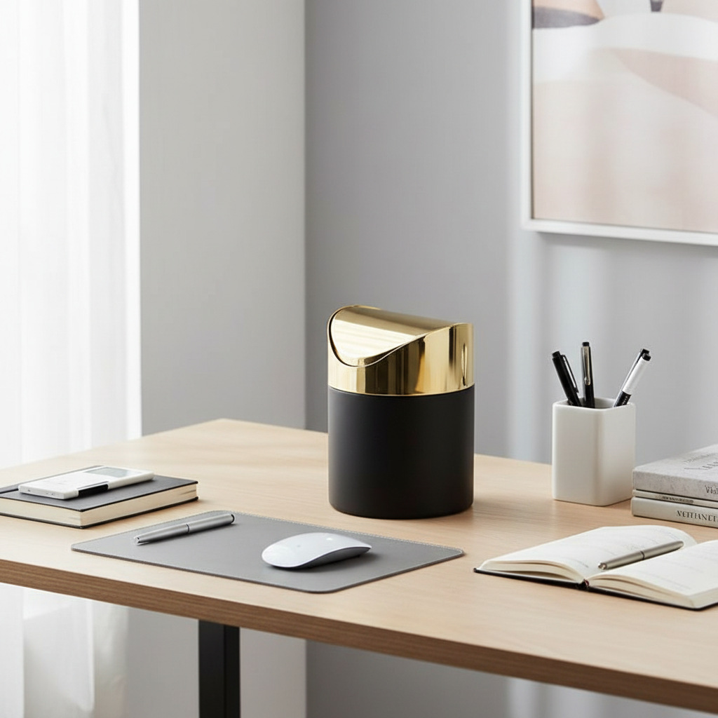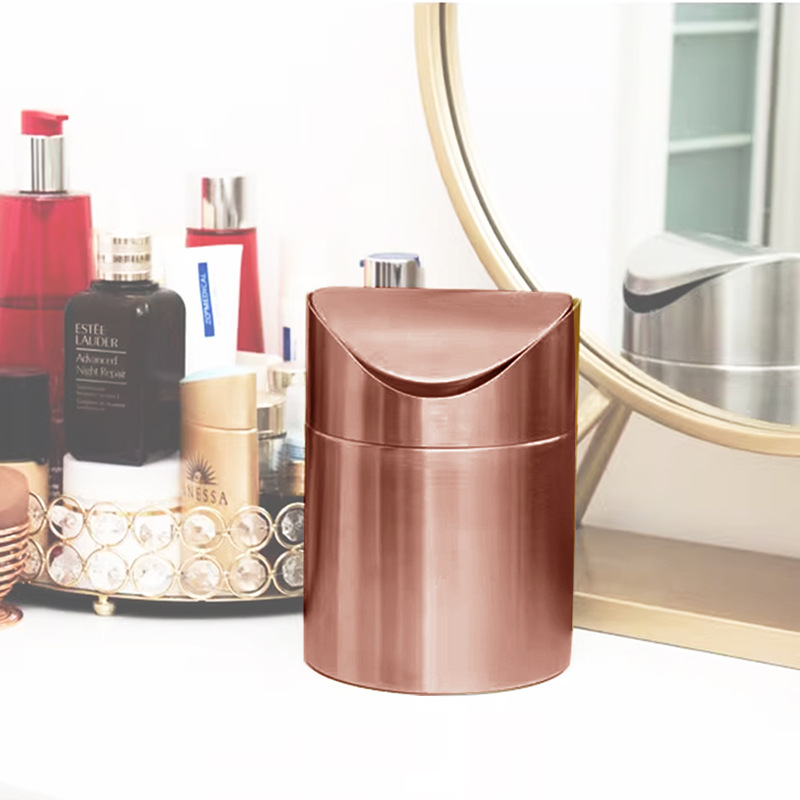 Golden Desktop Trash Can Creative Mini Trash Bin With Lid
