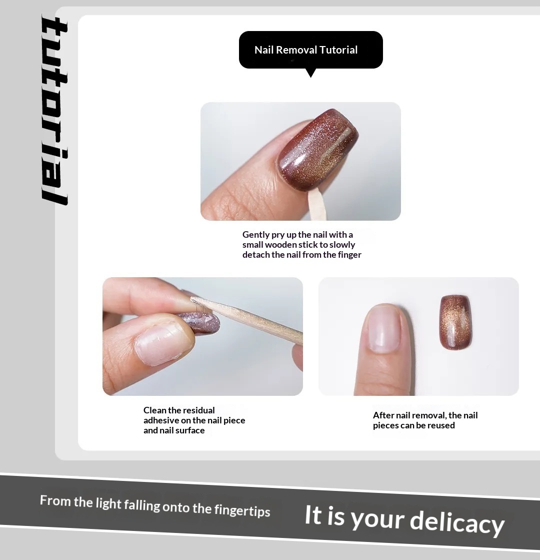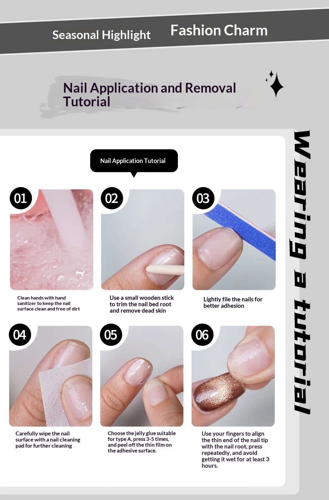 Color Category: XS size (suitable for very small hands/small builds/narrow nail beds), S size (suitable for standard nail and finger sizes), M size (for chubby hands/larger hands/flatter nail beds), L size (for full hands/extra-large nail beds)