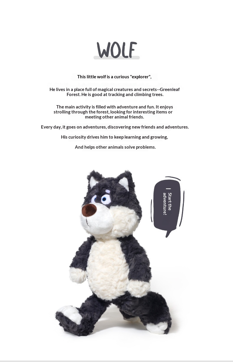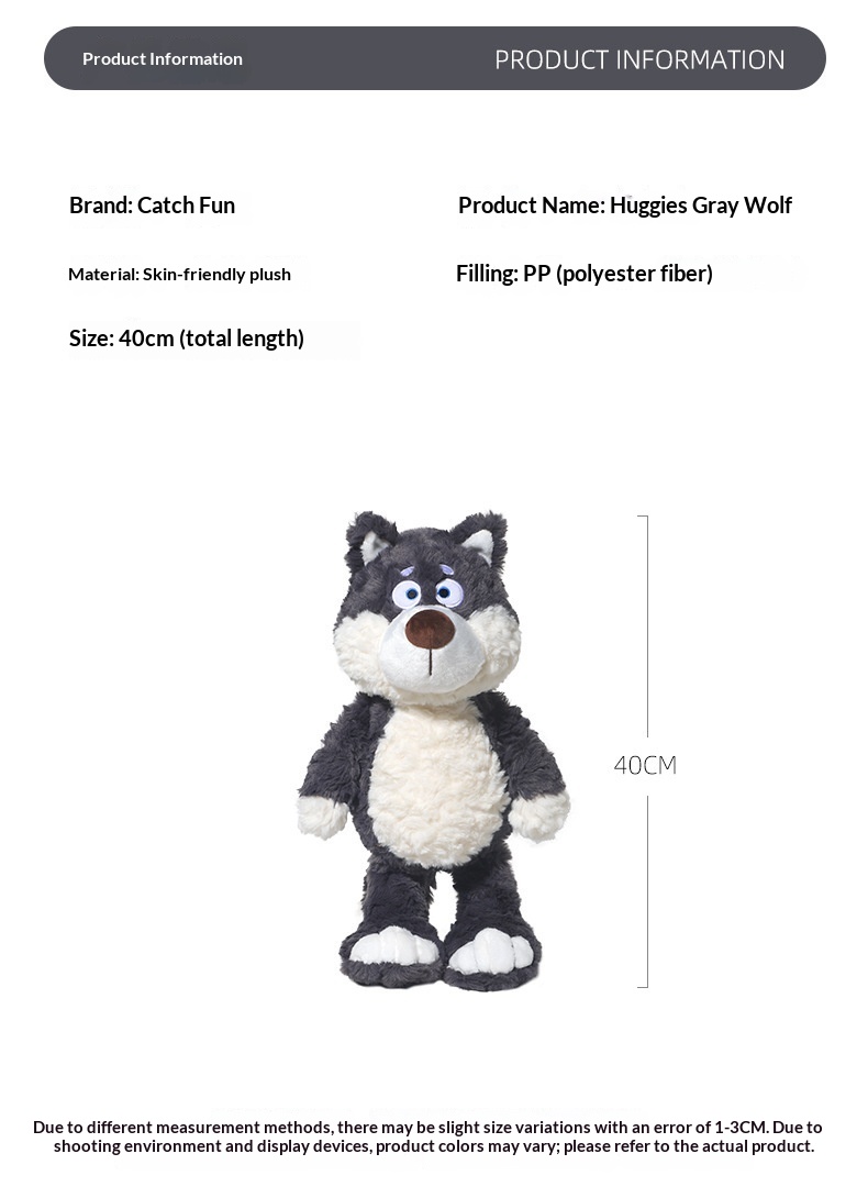 Product information:Color: Curious Gray Wolf Height: 40 cm Filling Material: PP Cotton Packing list: Toy *1 Product Image: