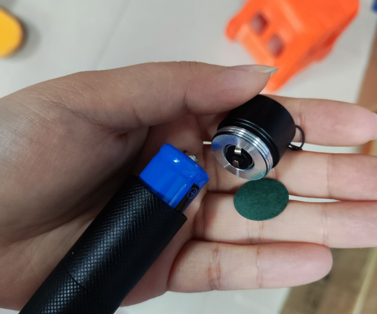 5.After installing the battery and end cap correctly, press the power button to turn the laser on. Be aware of that you need to keep pressing the button to keep the power of it.