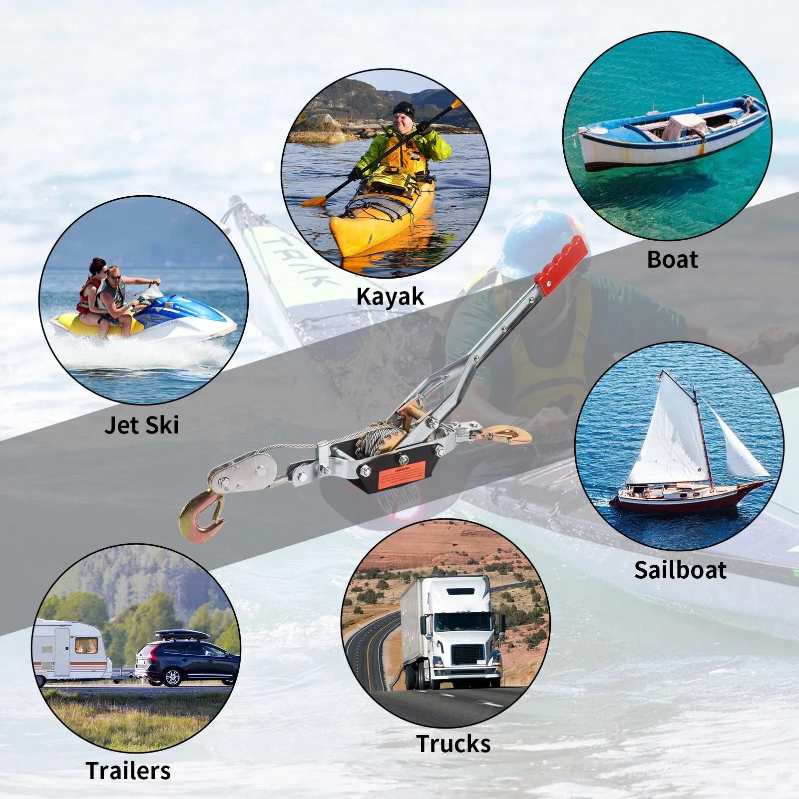 Specification Shipping Limitations:UnlimitedDimensions:26.38 in. * 4.73 in. * 3.15 in.Weight:7.94 lbsAvailable Ship to:France,GermanyDetailsProduct Name: Hand Cable Hoist (4T)Product Features:The...