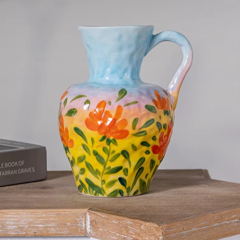 Hand-painted Ceramic Flower Teapot Ornaments For Home Living Room Tea Room And Entryway