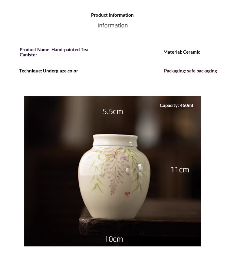 Product information:Main material: CeramicProduction process: Semi-handmadeSurface treatment: Hand-paintedPacking list:Tea Canister *1PCProduct Image: