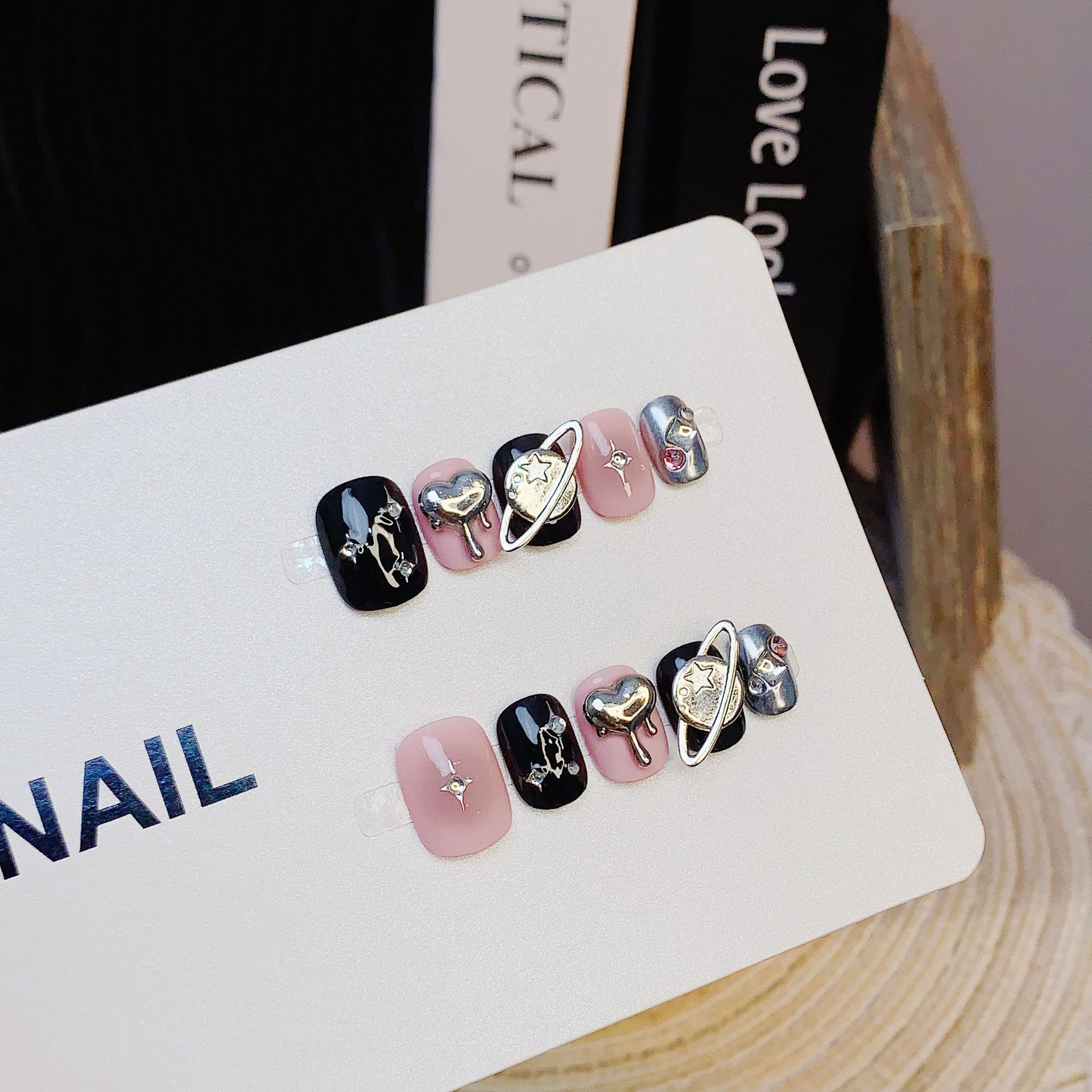 Mysterious Black-themed New Chinese-style Icy-cool Rhinestone Nail Tips For Wear