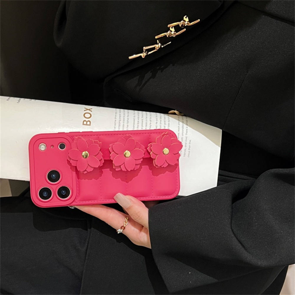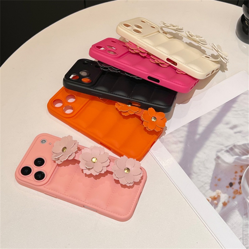 Handmade Candy Puffer Jacket Motif Camellia Wrist Strap Phone Case