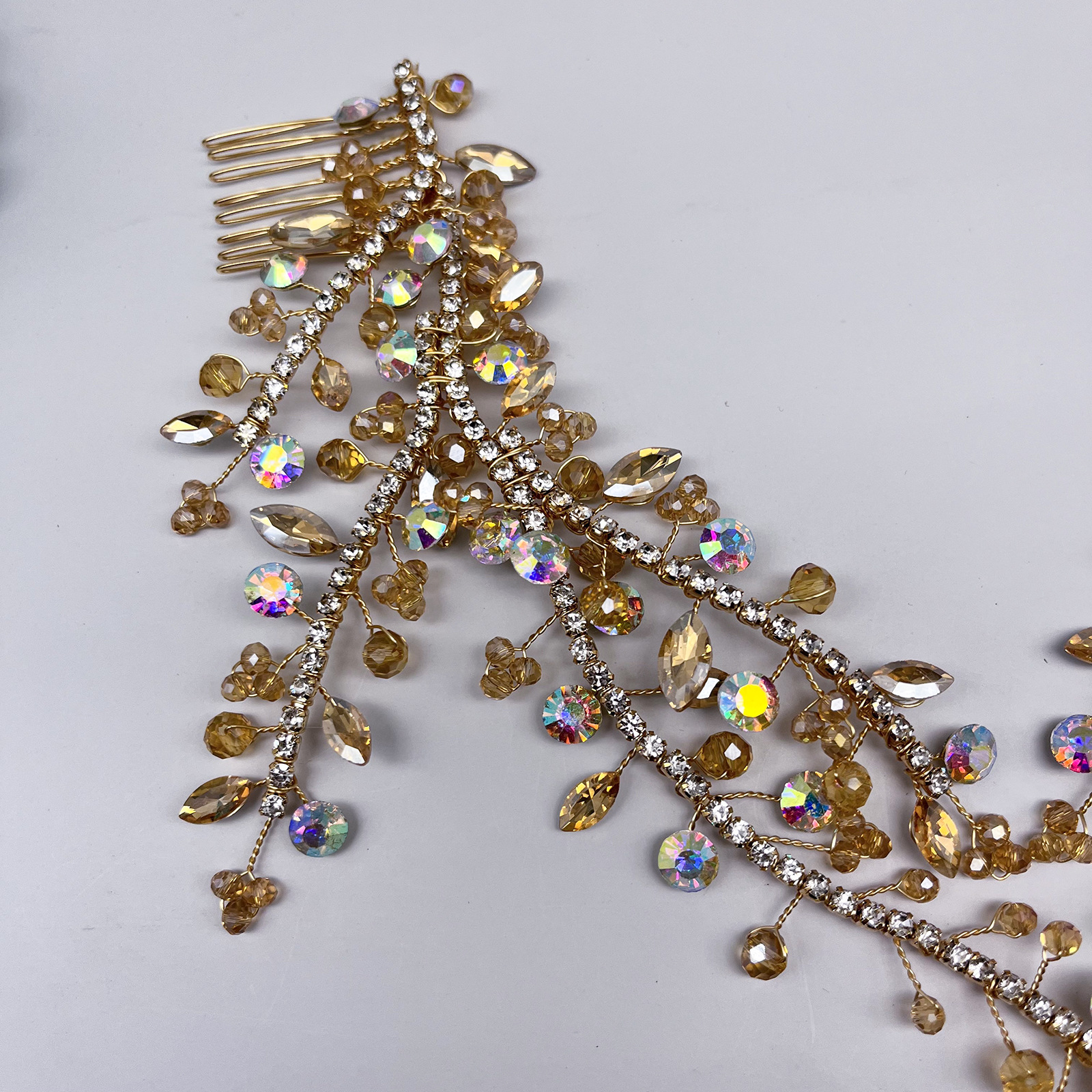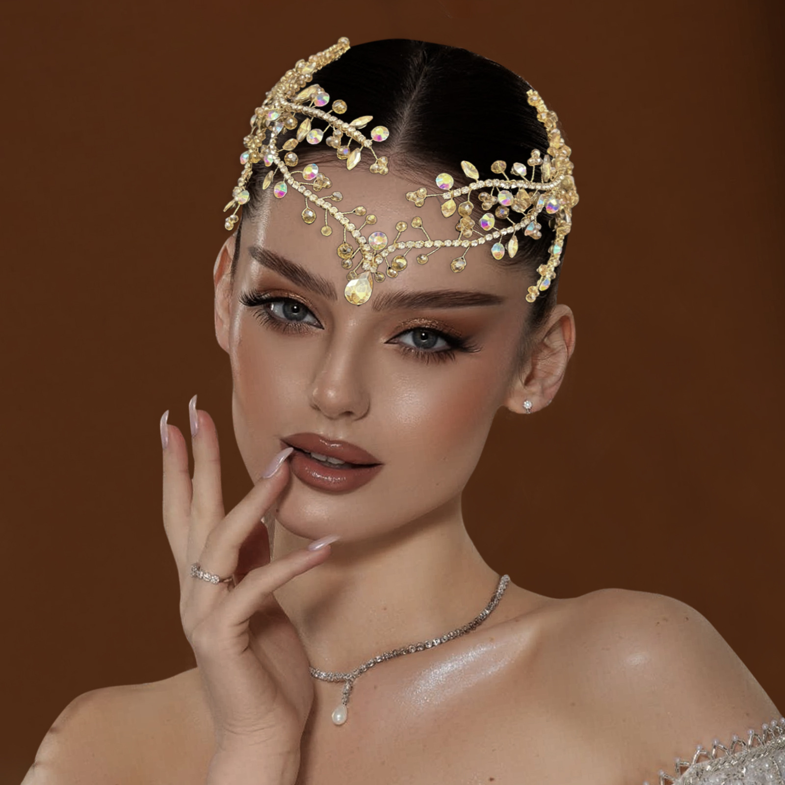 Handmade Forehead Chain Double Hair Comb Pendant Forehead Ornament In Colorful Hues