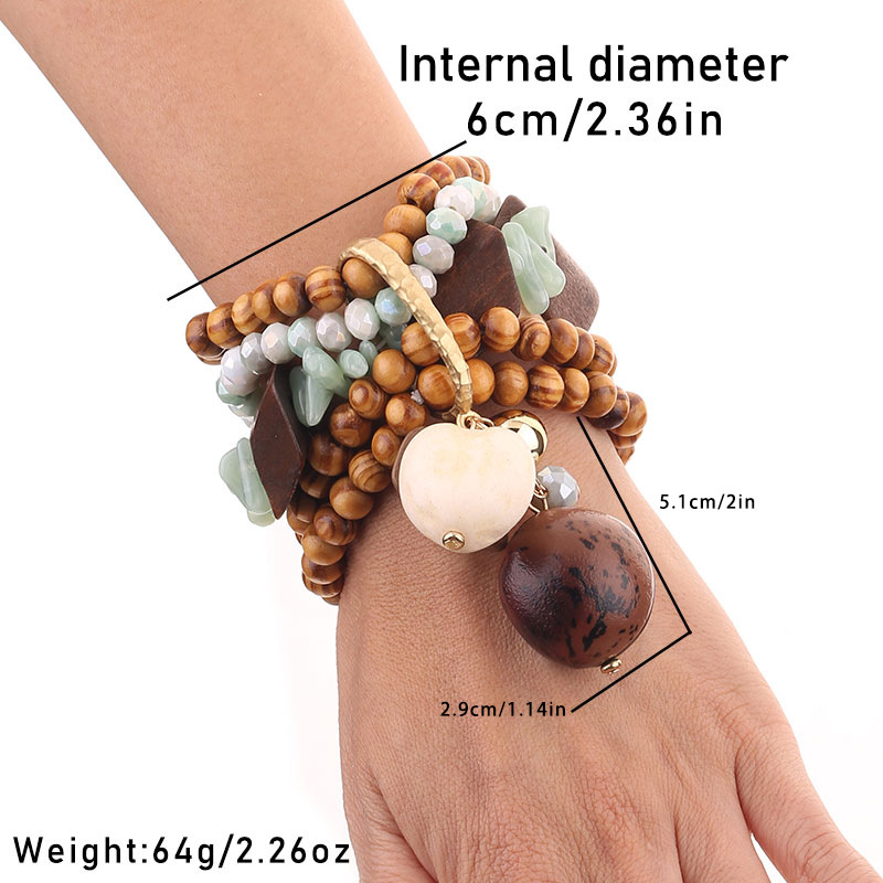 Handmade Multi-layer Wooden Bead Bracelet For Women