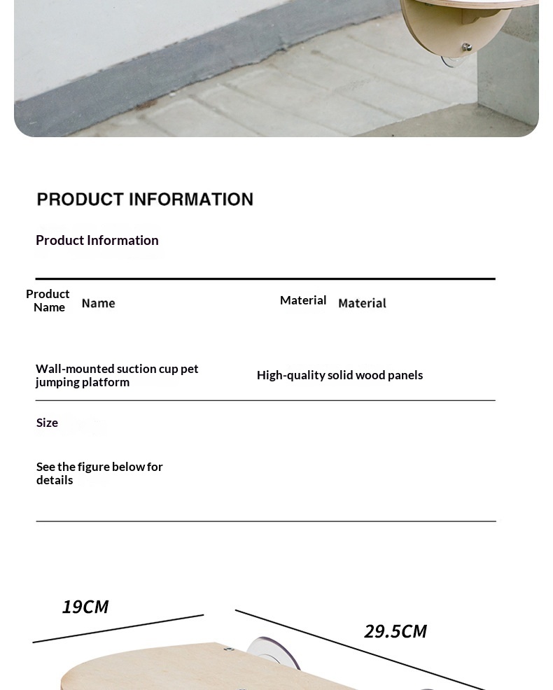 Product information:Color: Natural wood colorSpecifications: Shelf, 29.5 x 19 x 14.5 cmMaterial: WoodCategory: Pet Beds & Cage Packing list: Cat climbing frame x 1pc Product Image: