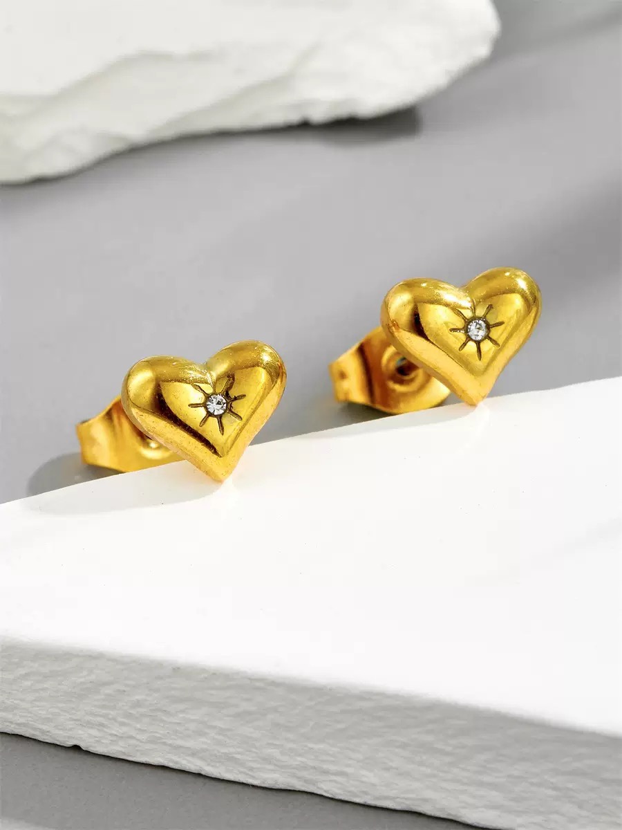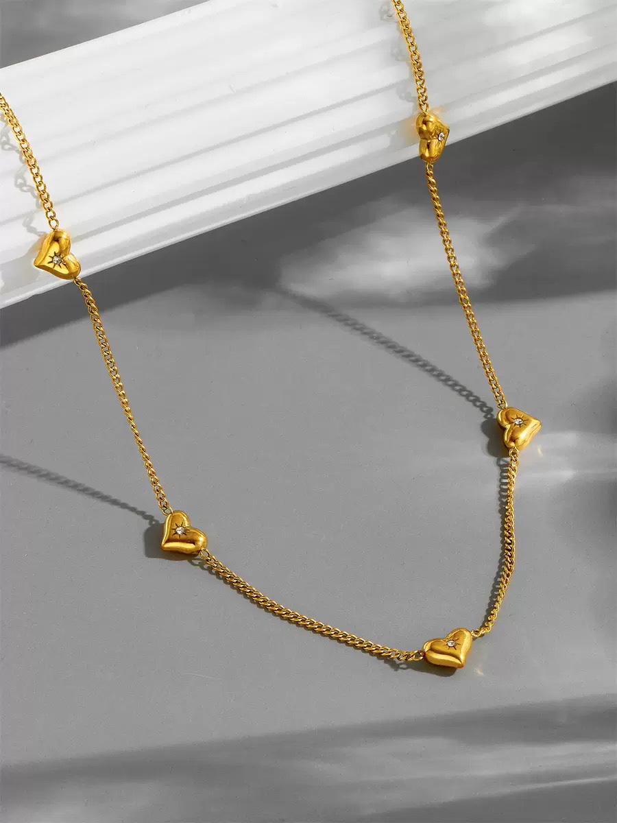 Product information:Processing Technology: ElectroplatingColor: X638 Diamond-Encrusted Little Heart Necklace, Gold; S542 Diamond-Encrusted Little Heart Bracelet, Gold; E102 Diamond-Encrusted Heart Stu...