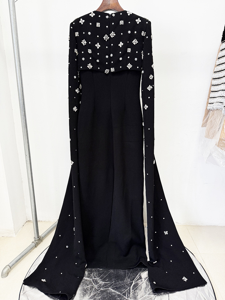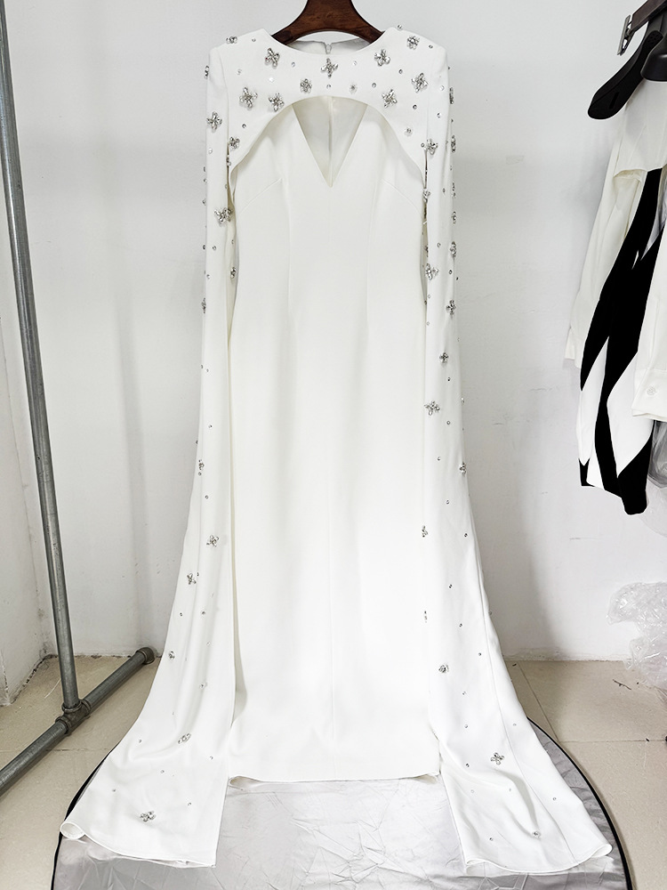 Heavy-duty Beaded And Diamond-encrusted Off-shoulder Long Dress