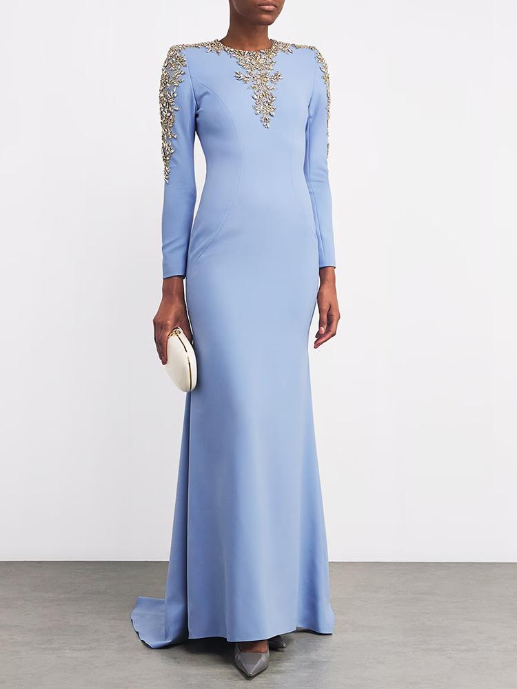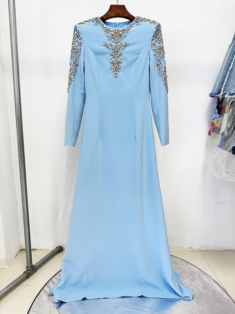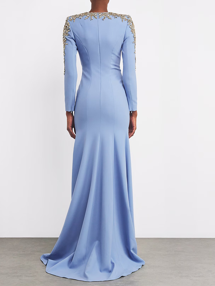 Heavy-duty Beaded And Diamond-encrusted Petite-trailing Long Dress