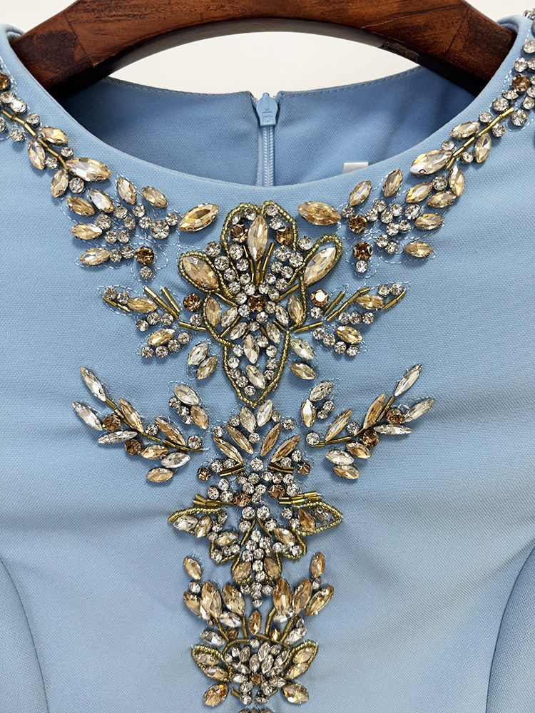 Product information:Color: Sky blue Waist Style: Mid-rise Sizes: S, M, L, XL, XXL, XXXL Skirt Length: Extra-long Trendy Element: Diamond embellishments Fabric Name: Cotton Sleeve Style: Regular sleeve...
