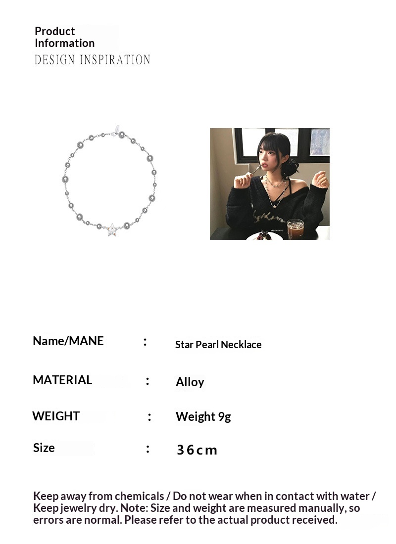Product information:Processing Technique: Electroplating Style: Short Starry Sky Necklace - X5311A, Long Starry Sky Necklace - X5311B, Long Star-and-Diamond Pearl Necklace - DX0771, Black-and-White Co...