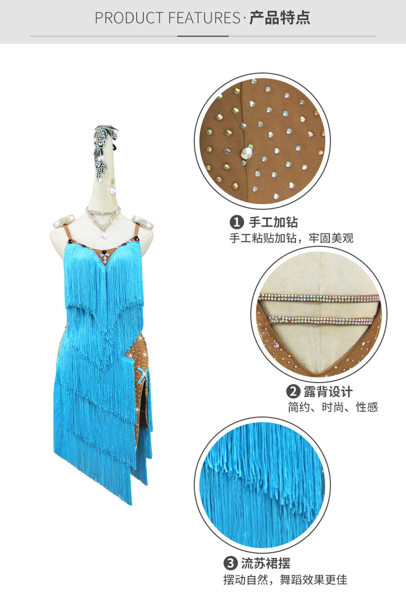 Product information:Fabric Name: Polyester Spandex Color: Blue Main Fabric Composition: Polyester Fiber (Polyester) Suitable Age: 25–29 years old Sizes: S, M, L, XL Suitable Occasions: Latin Dance / B...