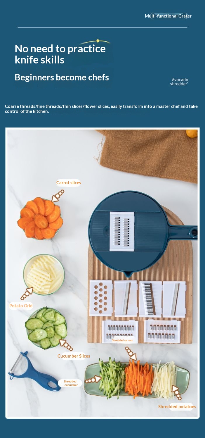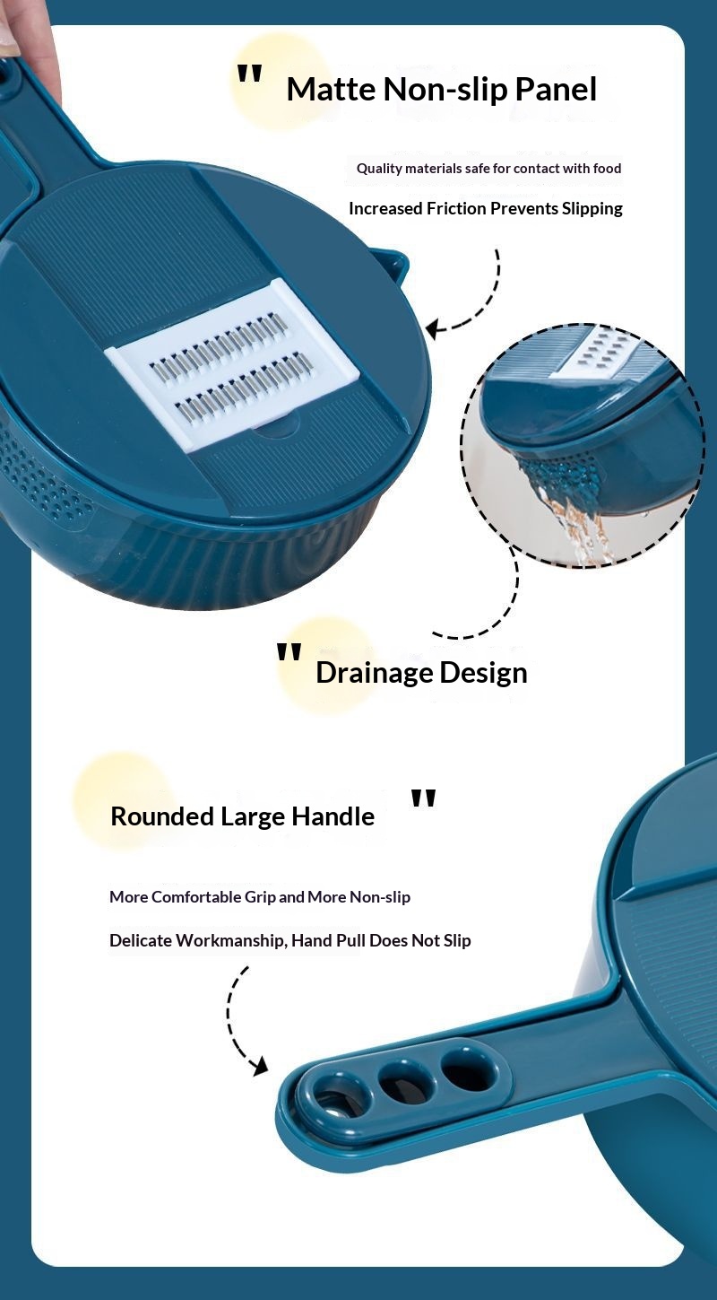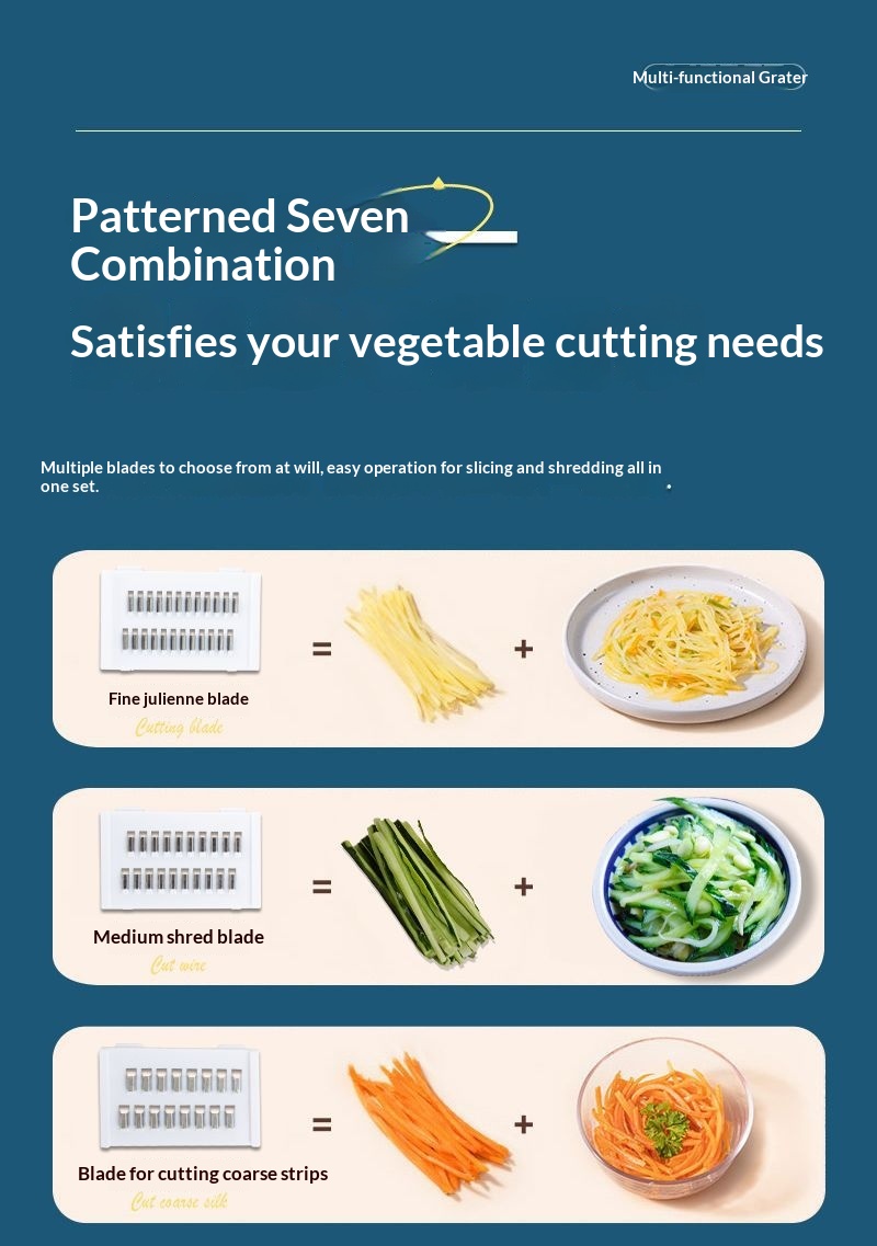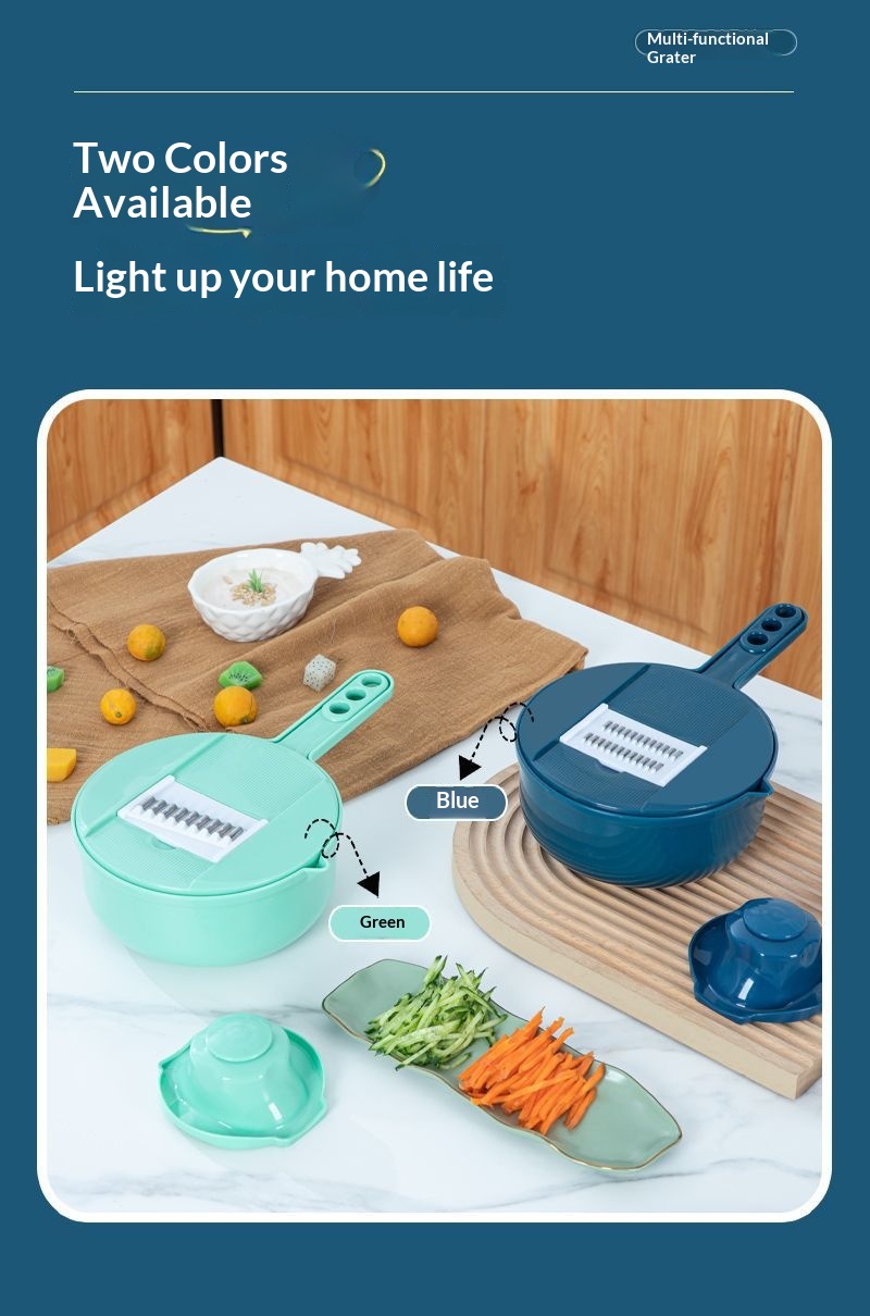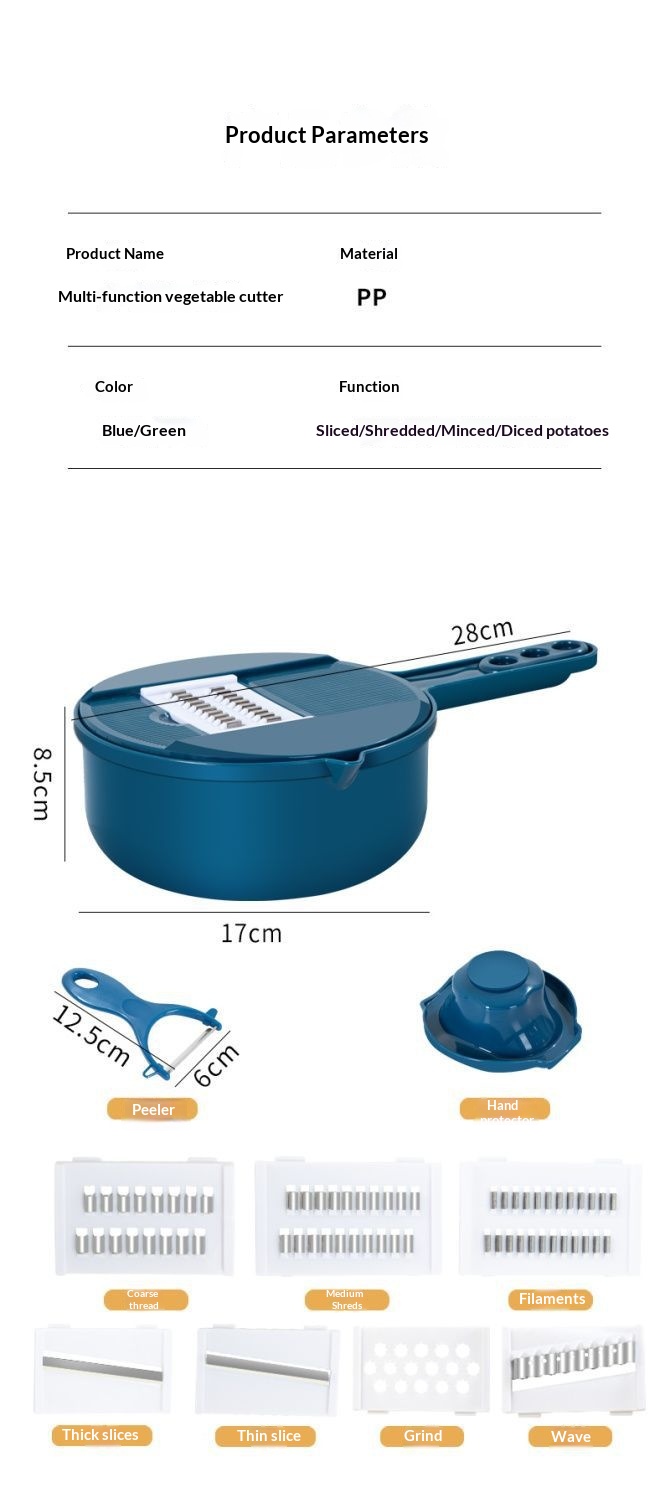 Product information:Color: Blue [7-in-1], Green [7-in-1], Blue [9-in-1], Green [9-in-1] Material: Stainless Steel Packing list: Grater * 1 Product Image: