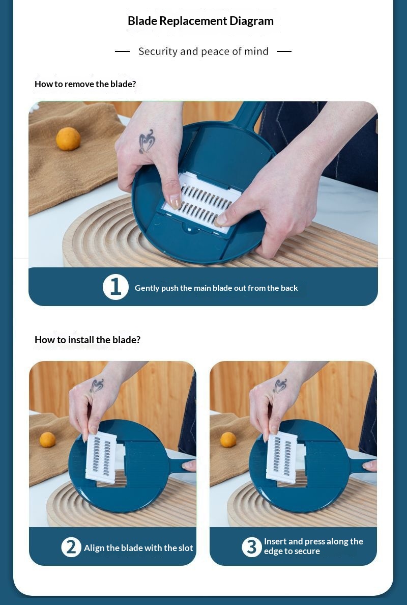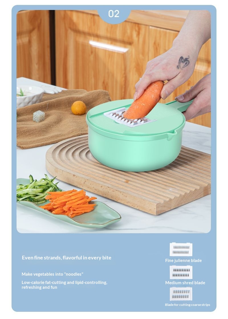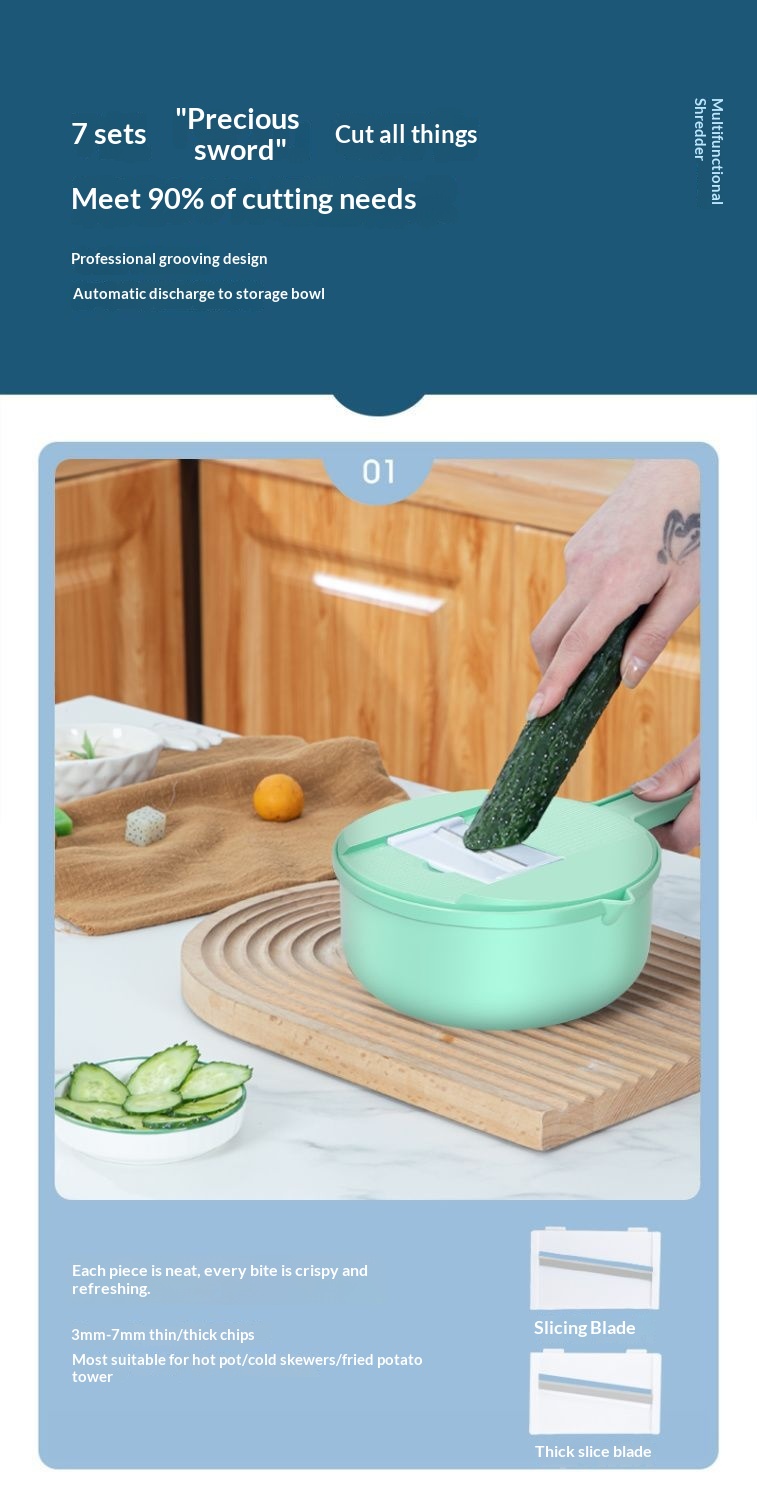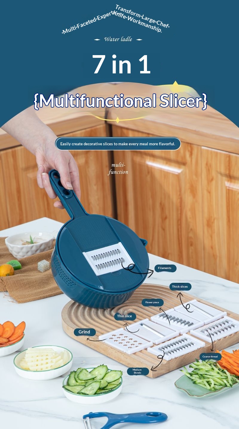 Product information:Color: Blue [7-in-1], Green [7-in-1], Blue [9-in-1], Green [9-in-1] Material: Stainless Steel Packing list: Grater * 1 Product Image: