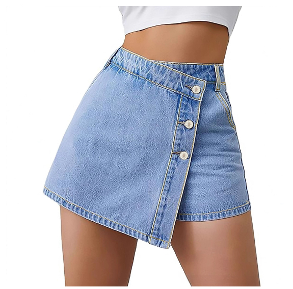 Irregular High-waisted Stretch Womens Denim Skirt Pants