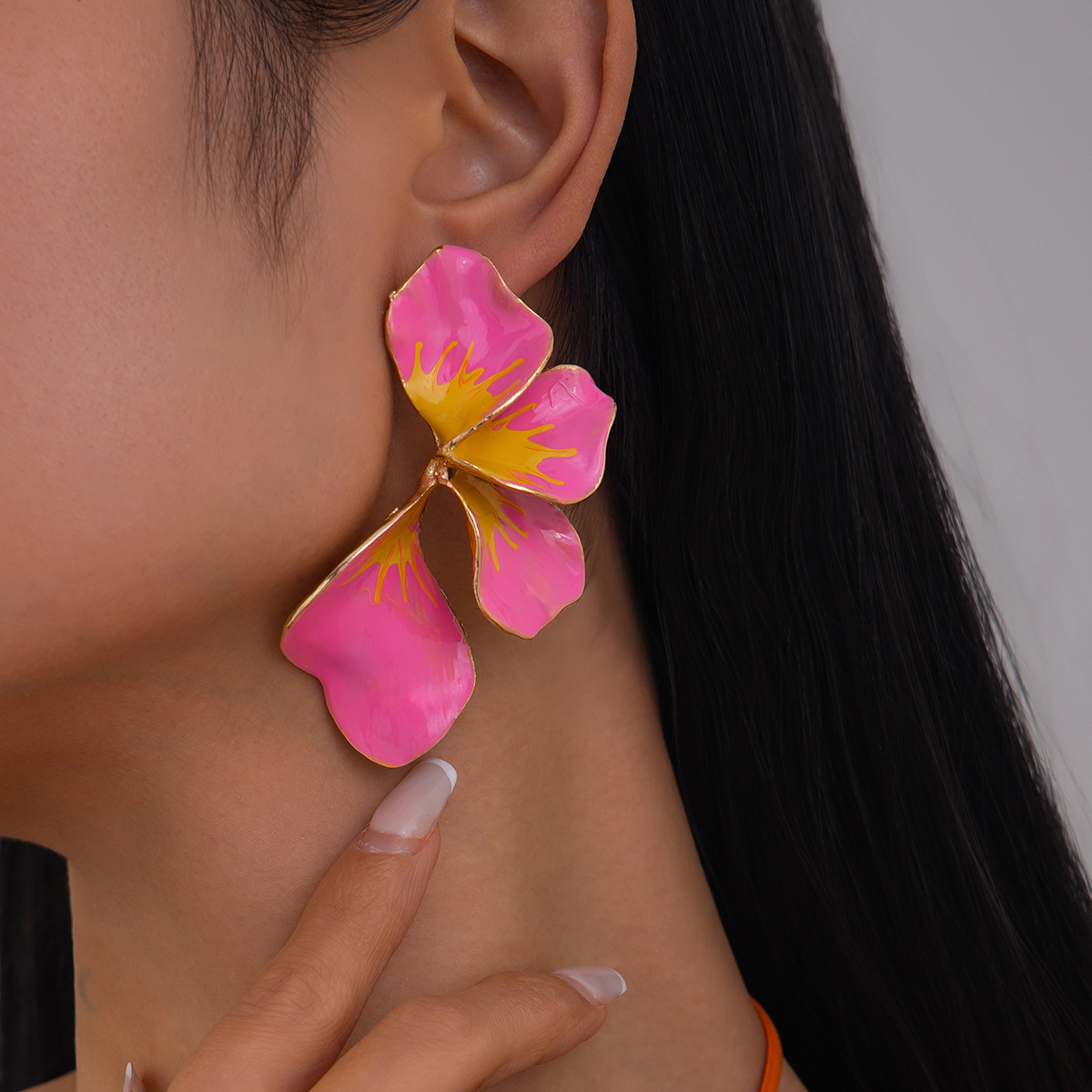 Irregular Petal Stud Earrings For Women Pastoral Colorful Flower Design