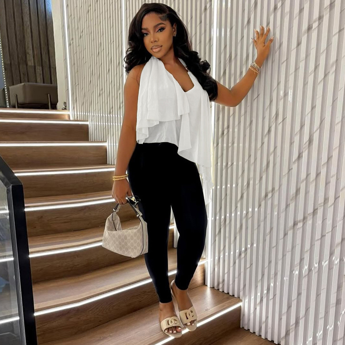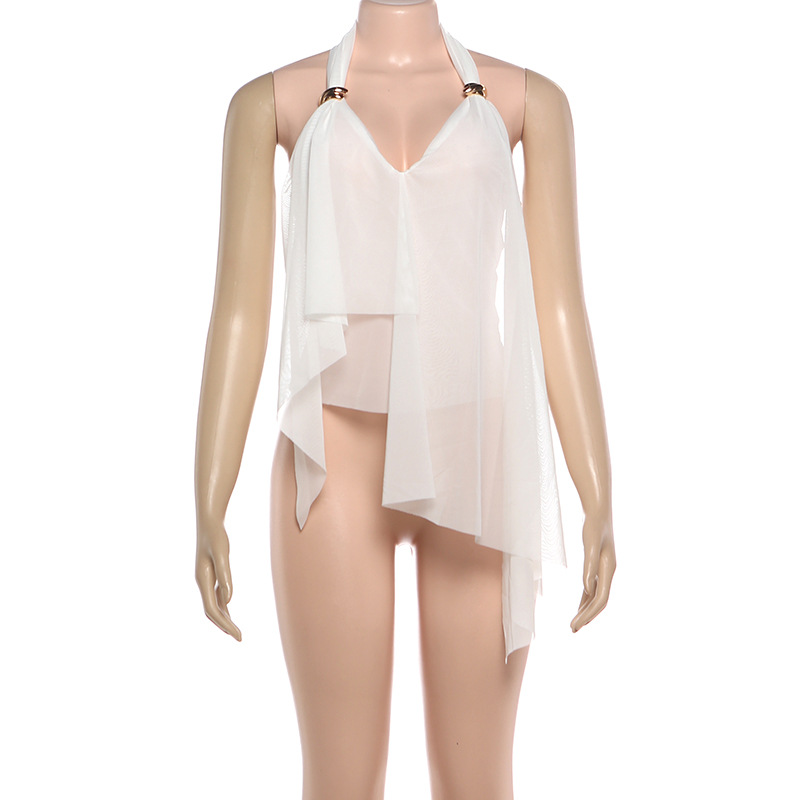 Product information:Pattern: Solid color Color: White, Black Composition: 95% polyester, 5% spandex Stretch: Slight stretch Sizes: S, M, L Fit: Asymmetric Style: Streetwear/Urban fashion Fashion Eleme...