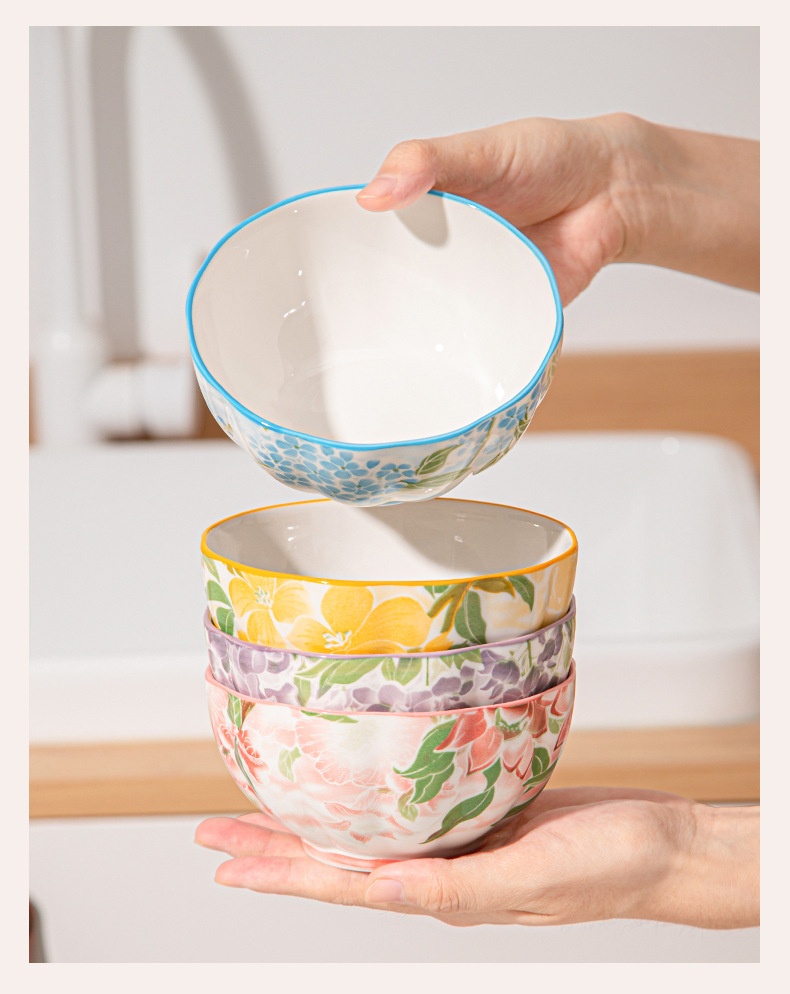 Japanese-style Creative Ceramic Bowl With Underglaze Coloring For Home Use