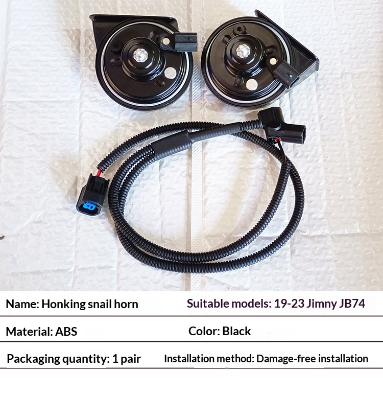 Product information:Name: Honking Snail Horn Compatible Vehicle Model: 2019–2023 Jimny JB74 Material: ABS Color: Black Packaging Quantity: 1 pair Packing list: A pair of speakers Product Image:...