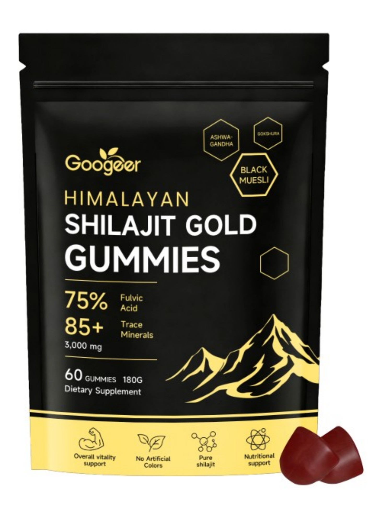 Product information:Ingredients: Xilaizhi extract, withania somnifera root extract, black grass rhizome extract, Tribulus terrestris extract.Packing list:Soft candy *60 GUMMIES